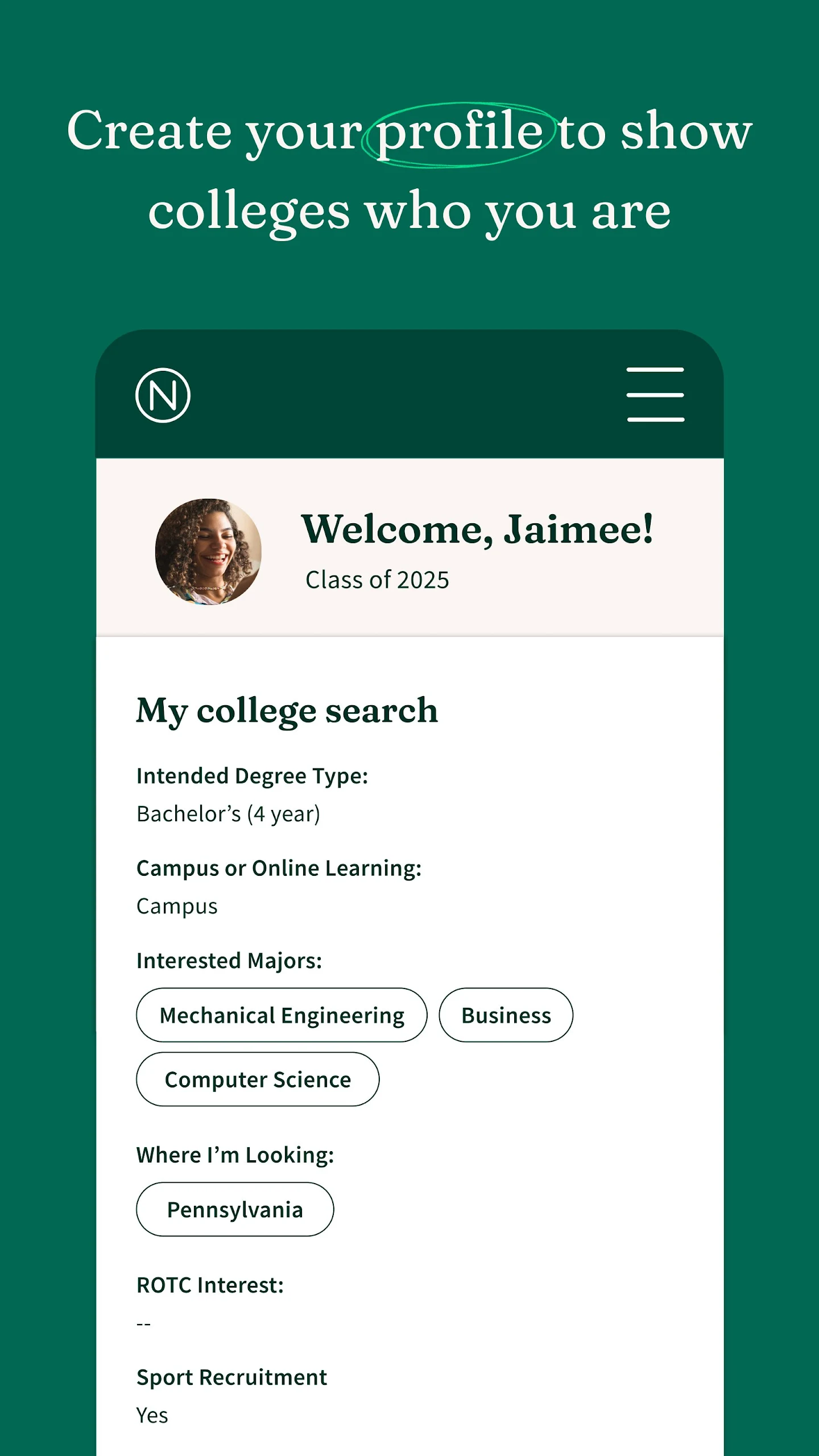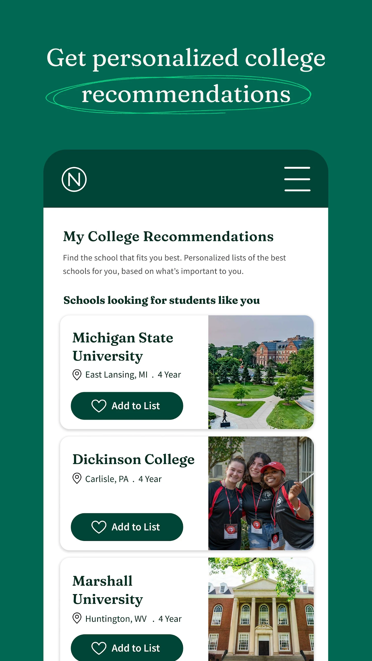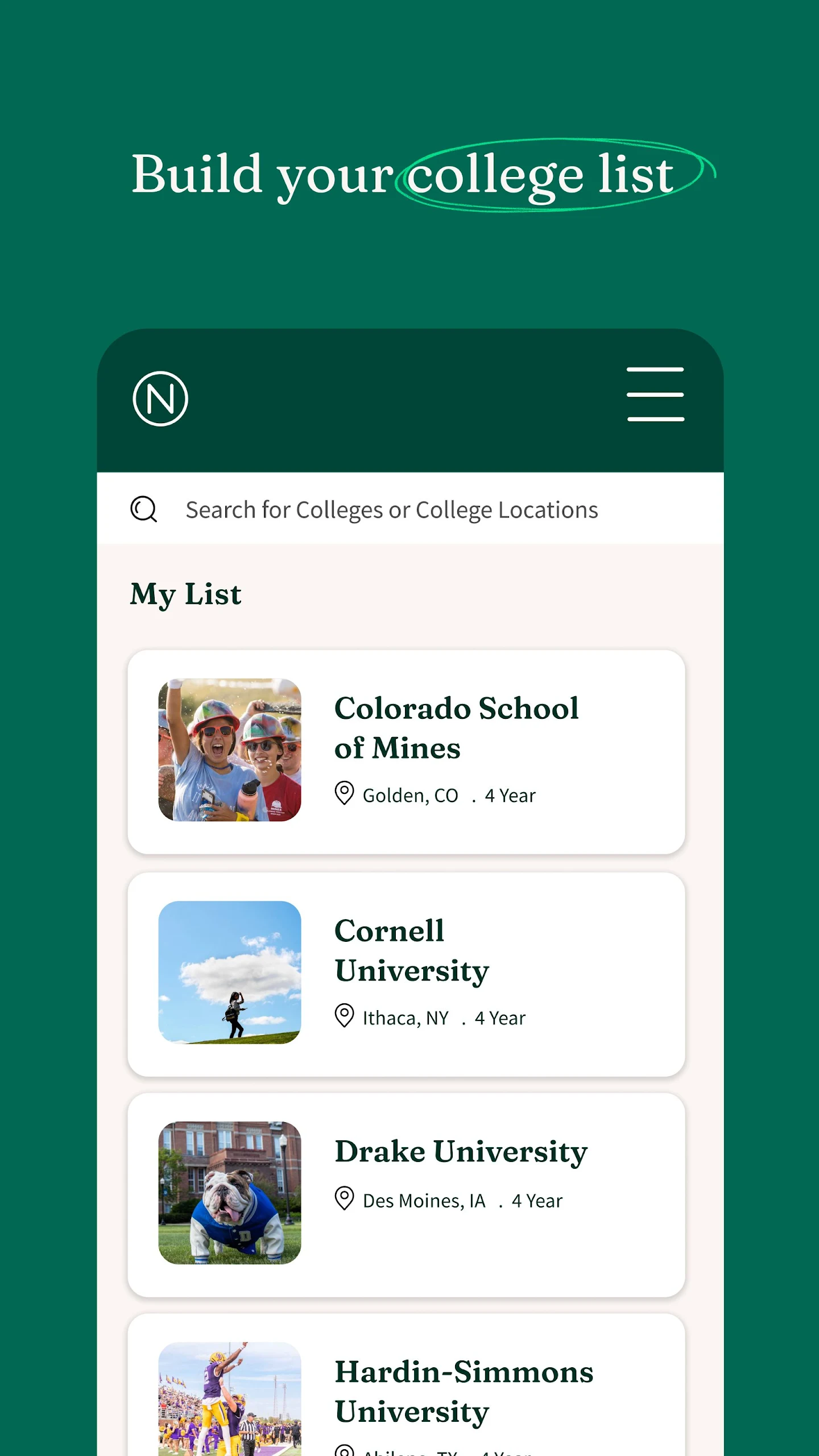 • Tailored recommendations: As you begin using the app, we will generate customized lists of colleges that align with your preferences and interests.