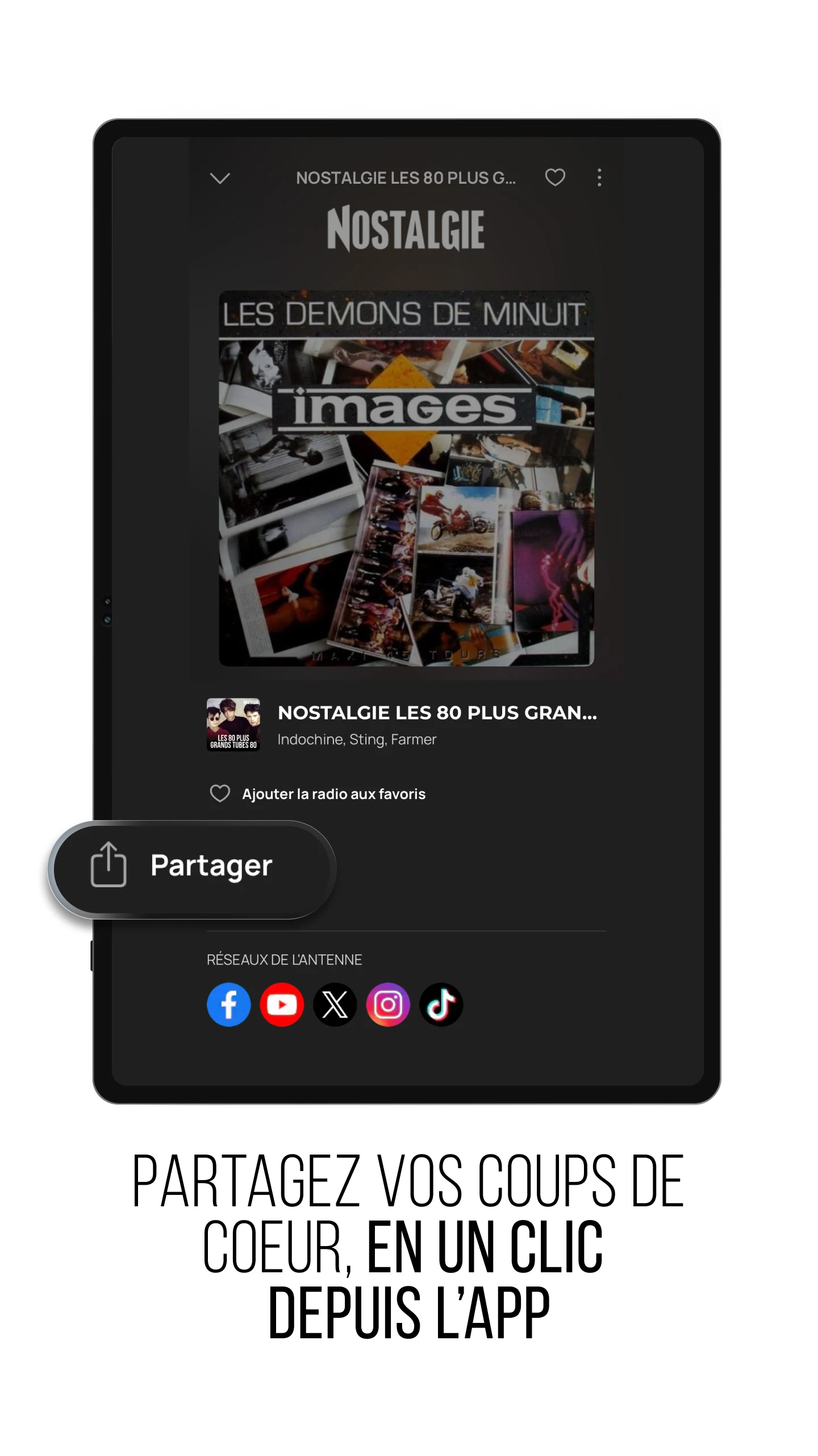Discover the new Nostalgie application, completely redesigned to provide you with an optimal browsing and listening experience, with even more features and content!