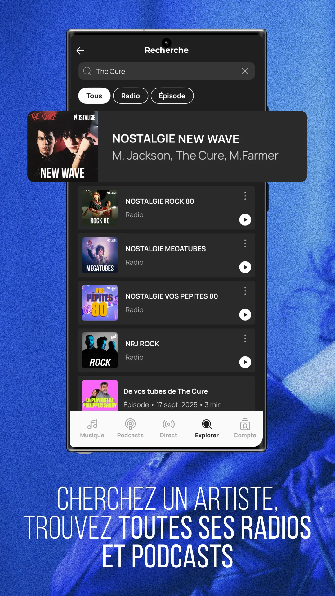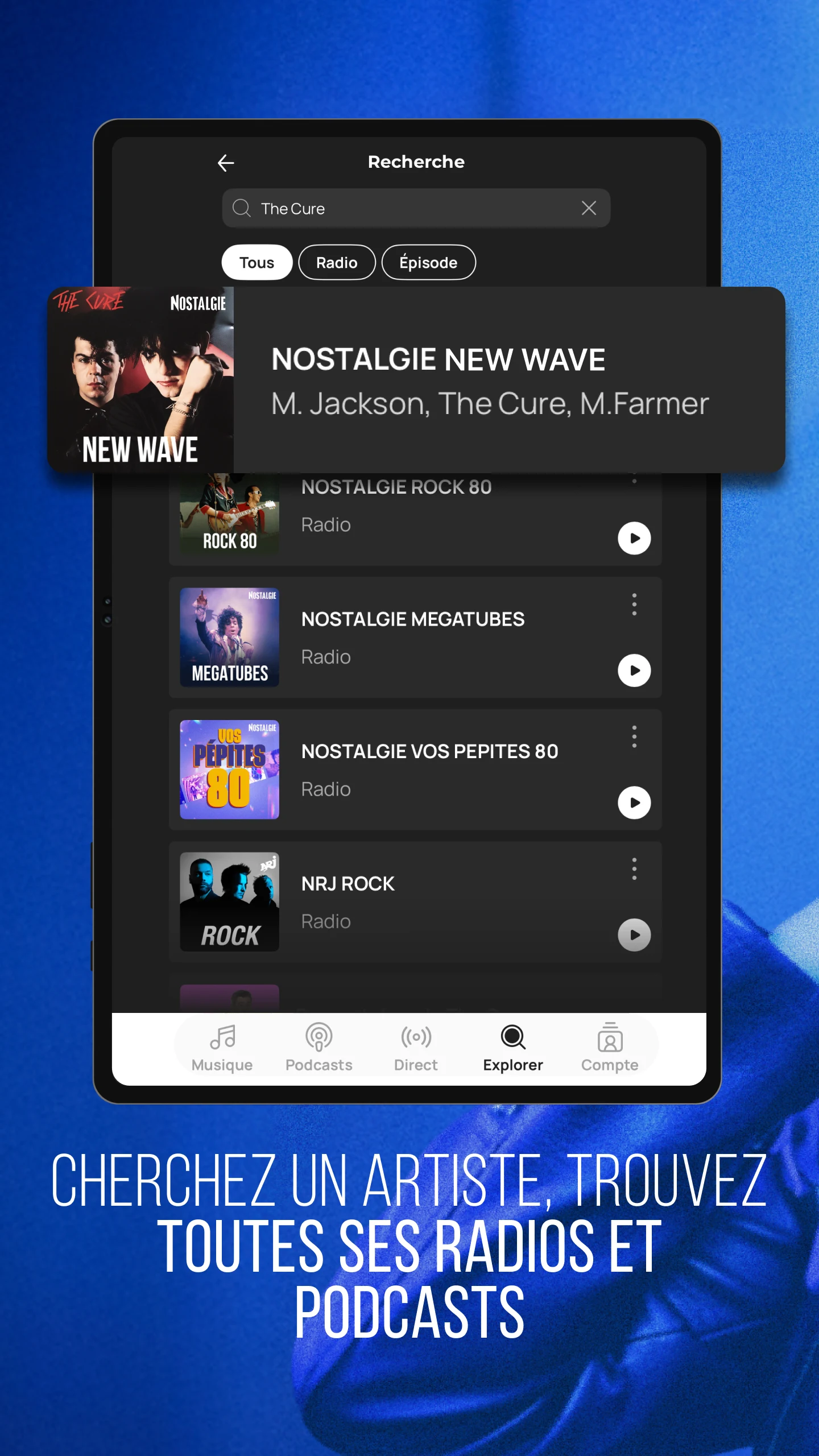 You now have access to the entire NRJ Group podcast catalog in one app, featuring over 150 podcast programs including numerous original creations and exclusives.