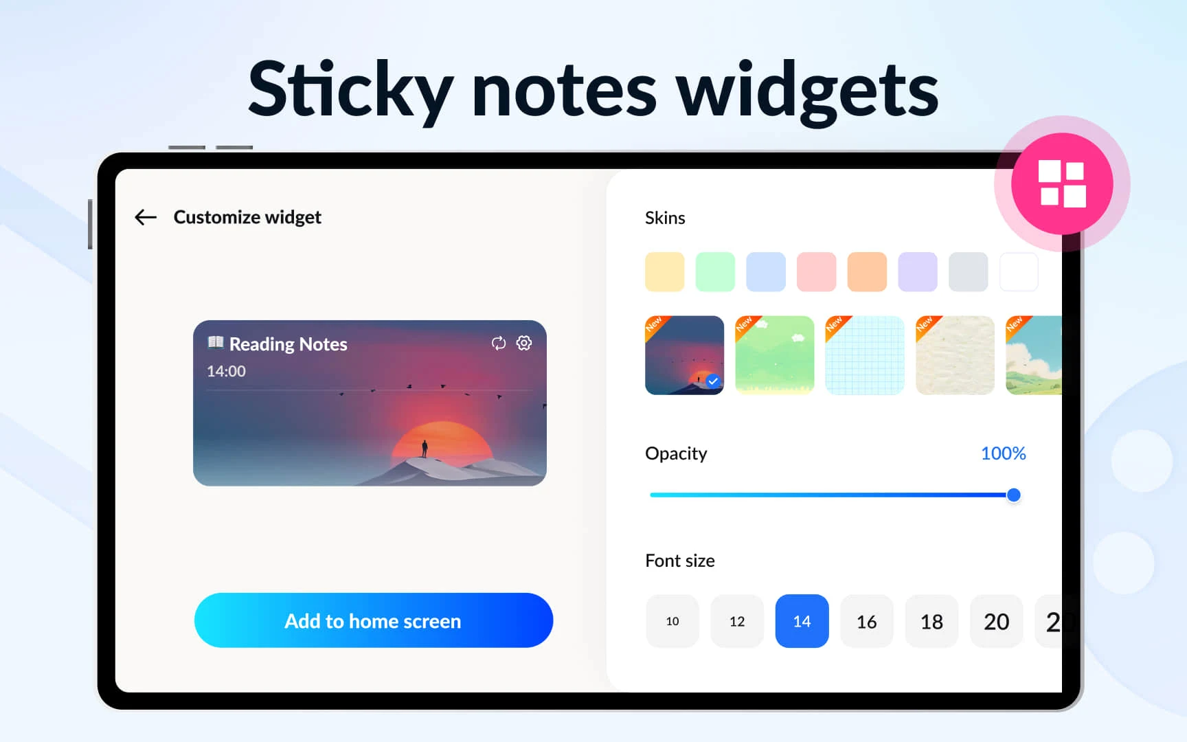 Notein - Notepad, Notes, Lists allows adding sticky notes widgets to your home screen for quick access to your notes.