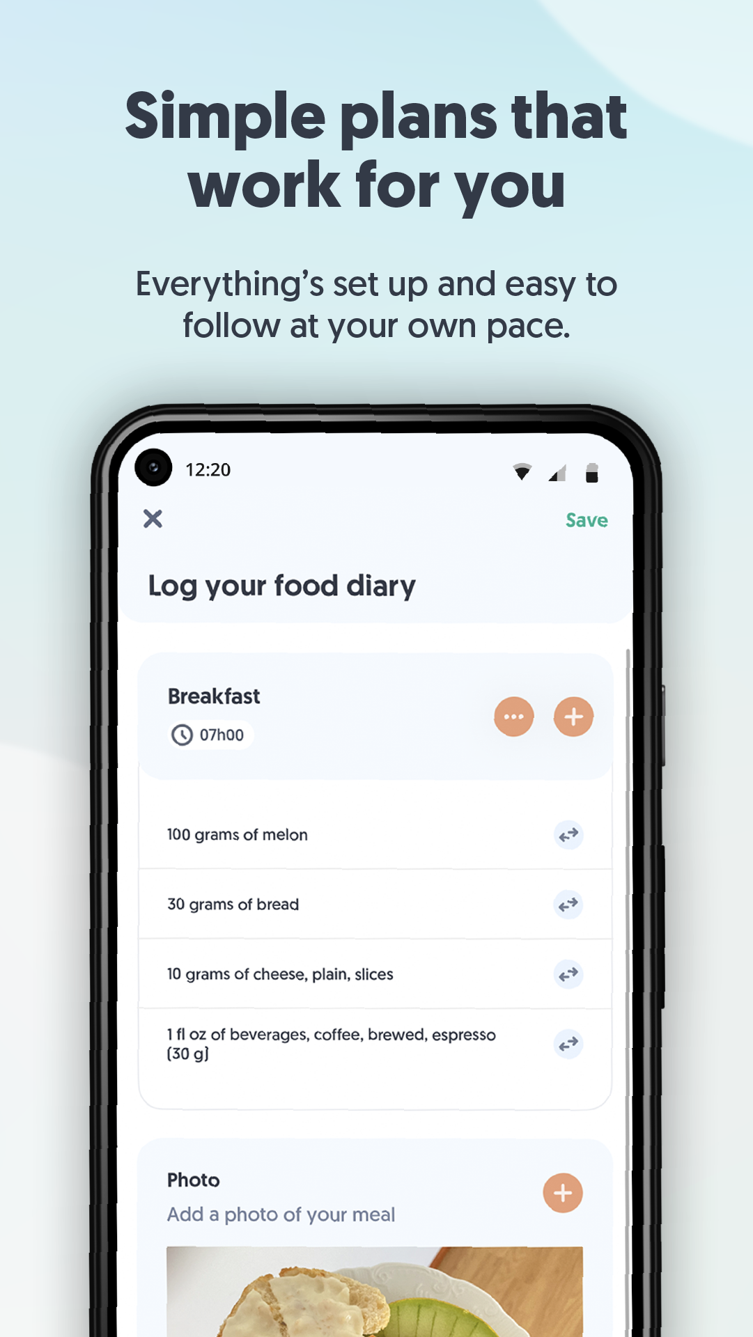 Monitor your food intake with a fully digital Meal Plan: You can access your meal plan anytime within the app, facilitating adherence wherever you go.