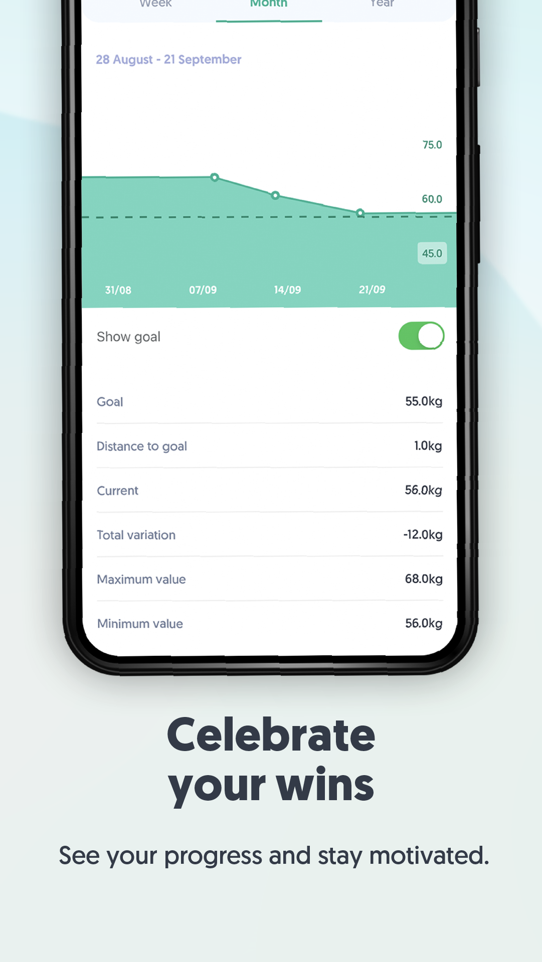 Track your progress: The app allows you to view your body measurements over time in graphical formats and update them as needed, aiding you in weight management and other target achievements.
