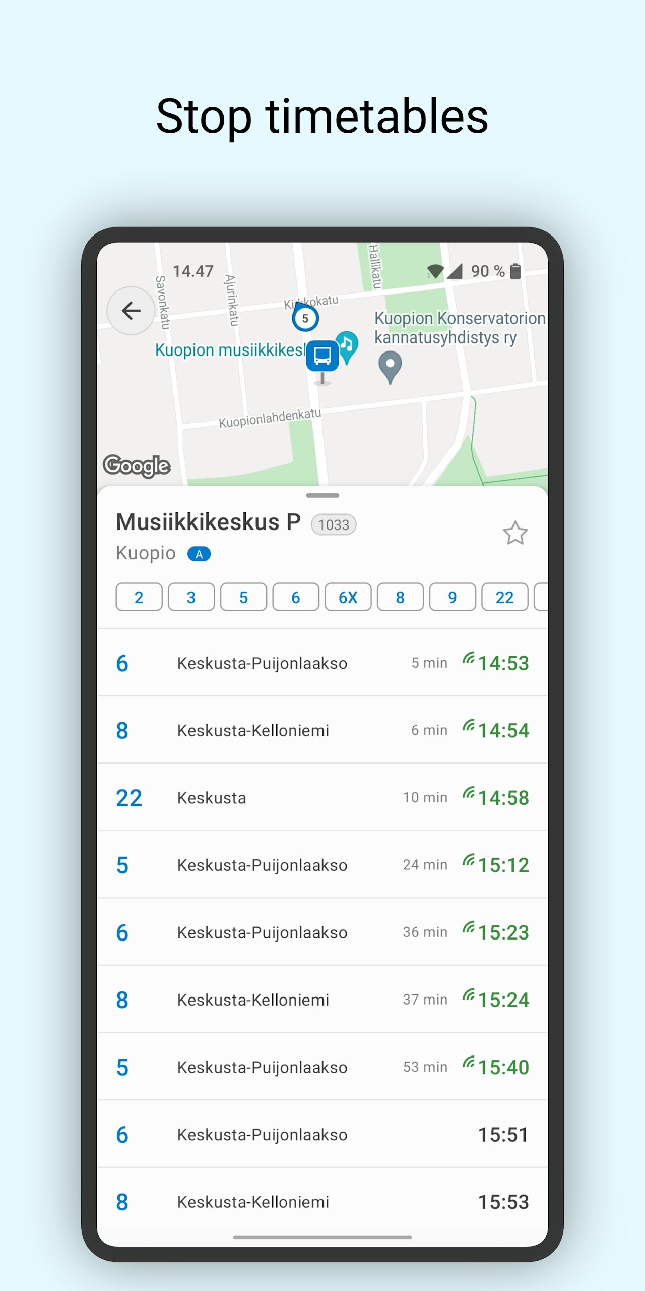 Utilize real-time stop timetables to quickly find out the next departures from any stop.