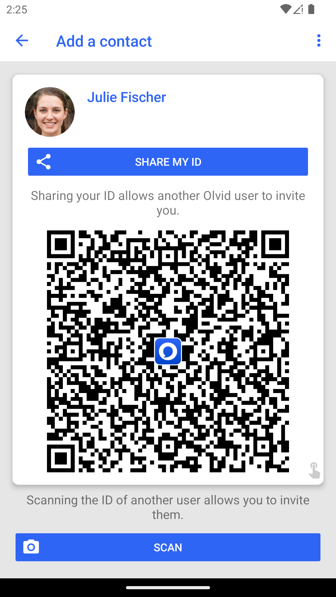 - That does not impose new contacts on you. You maintain control: you decide with whom you want to engage in conversation. Olvid provides multiple options to invite others who use Olvid, whether in person or from a distance.