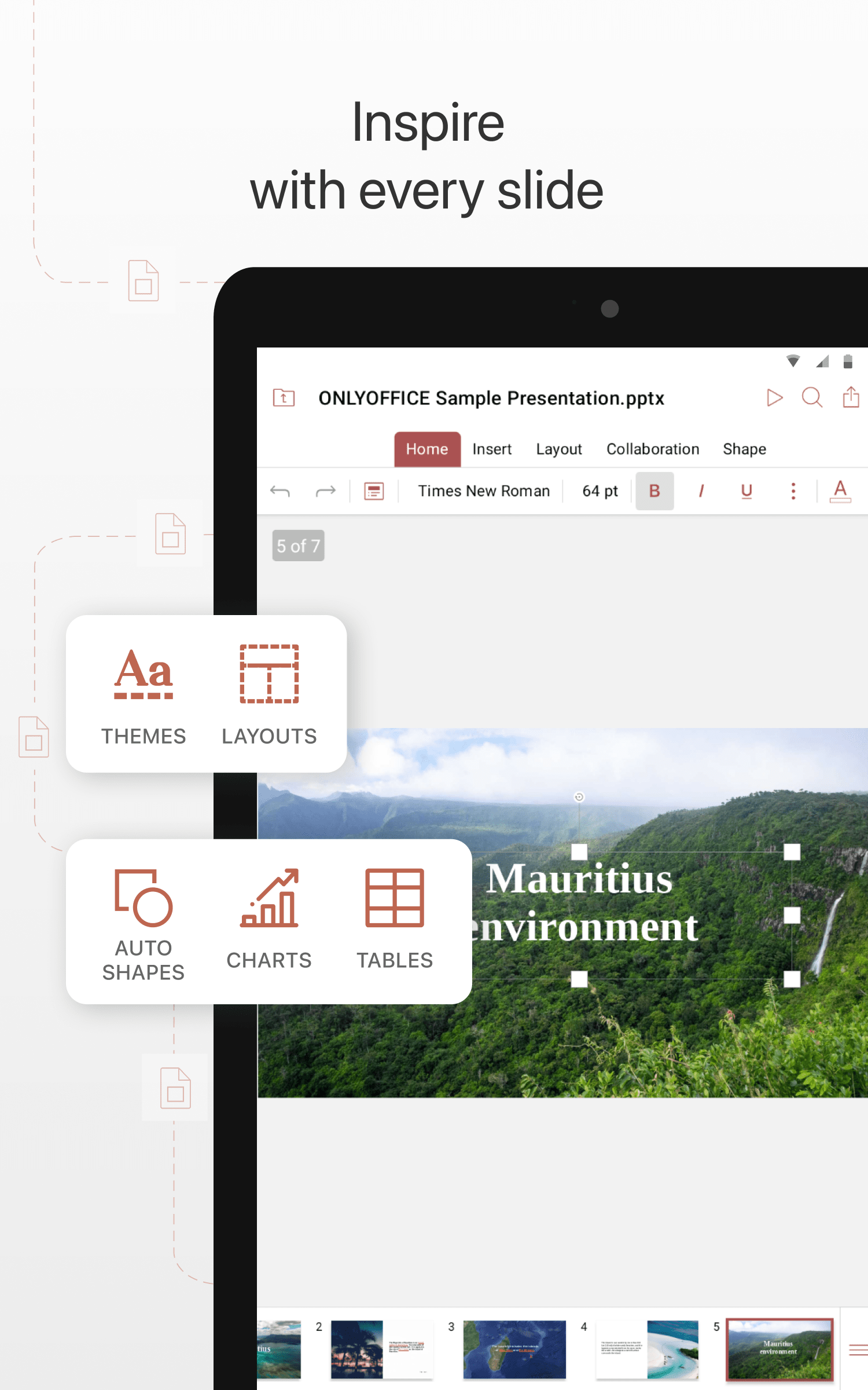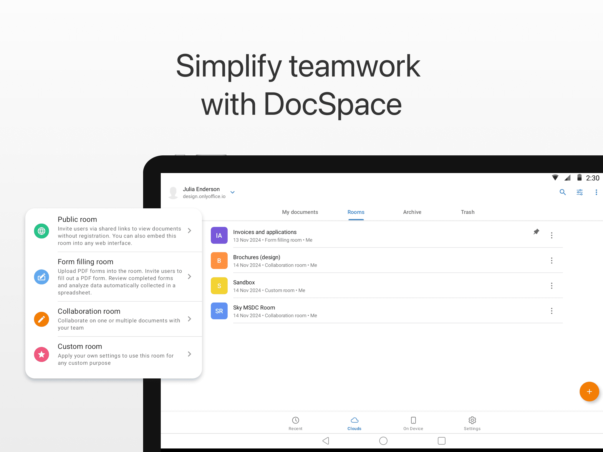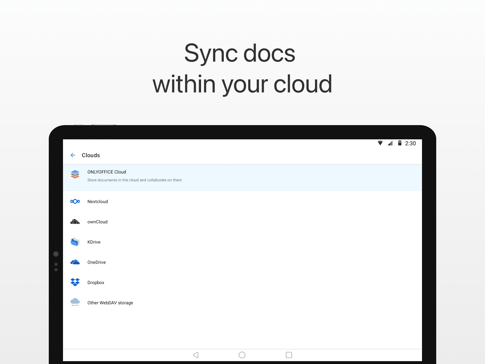 ONLYOFFICE provides a full range of tools to create, edit and collaborate on text documents, spreadsheets, presentations, PDF forms and regular PDF files on web, desktop and mobile platforms.
