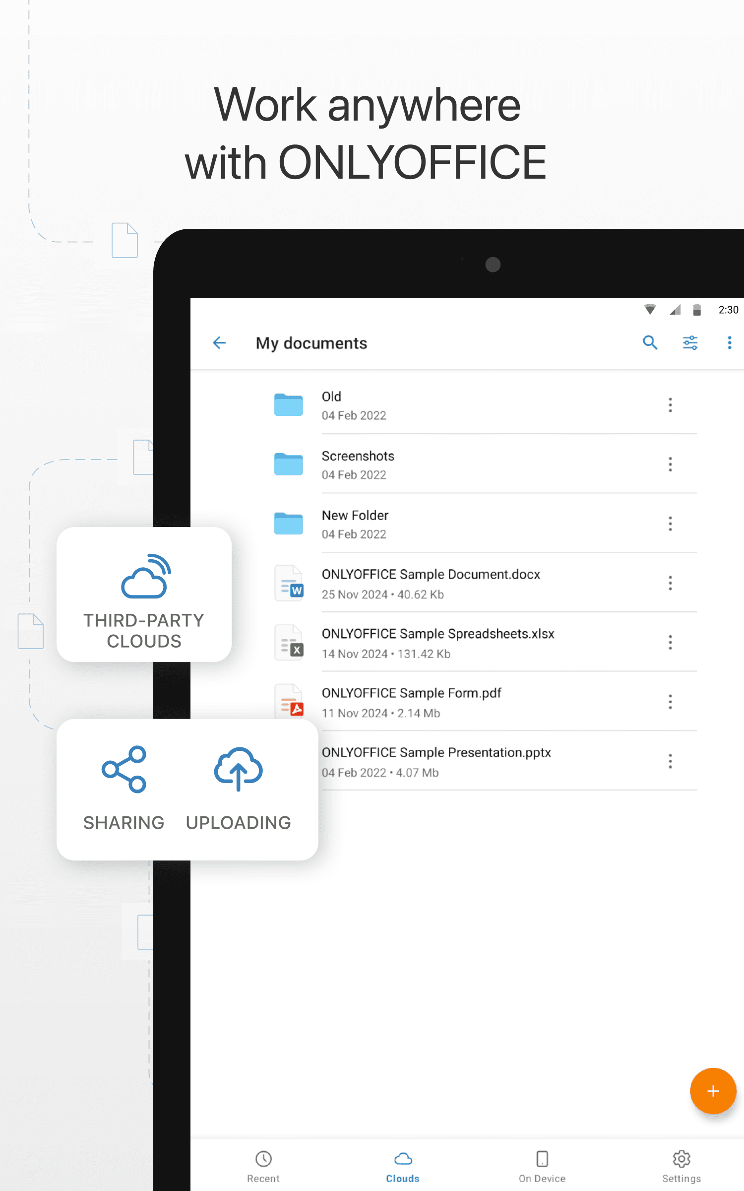 ONLYOFFICE Documents is a complimentary application designed for managing office documents. You can conveniently access and organize files located in the ONLYOFFICE cloud while collaborating with your colleagues. It also enables you to view, manage, and edit local files.