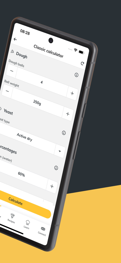 Our intelligent pizza dough calculator eliminates uncertainties involved in making dough. You have the ability to modify parameters such as temperature, hydration level, yeast variety, and proofing duration to achieve your desired results.