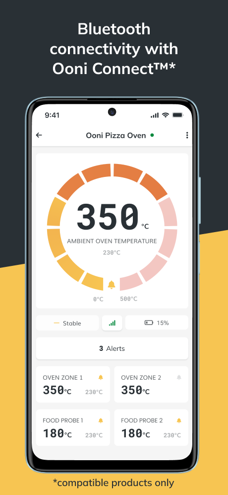 Additionally, the Ooni app allows you to connect with ovens equipped with Ooni Connect™ through Bluetooth, enabling you to monitor temperatures remotely and in real time.