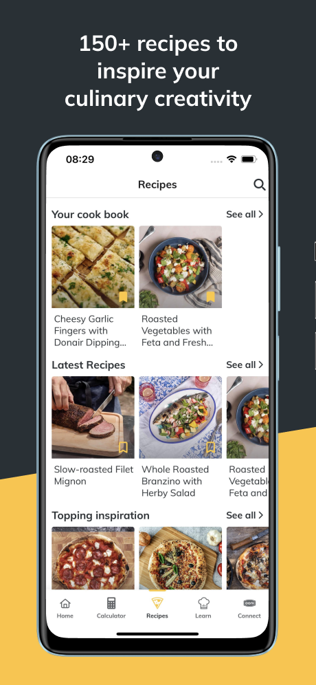 The Ooni app serves as your perfect companion for crafting pizzas, featuring a smart dough calculator and connectivity through Ooni Connect™ via Bluetooth.
