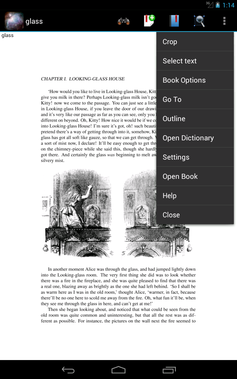 This application serves as a viewer for various formats including PDF, DJVU, XPS, comic book (CBZ, CBR, CBT), and TIFF files. Users can scroll through pages using touch gestures (refer to Menu/Settings/Tap Zones for more information).