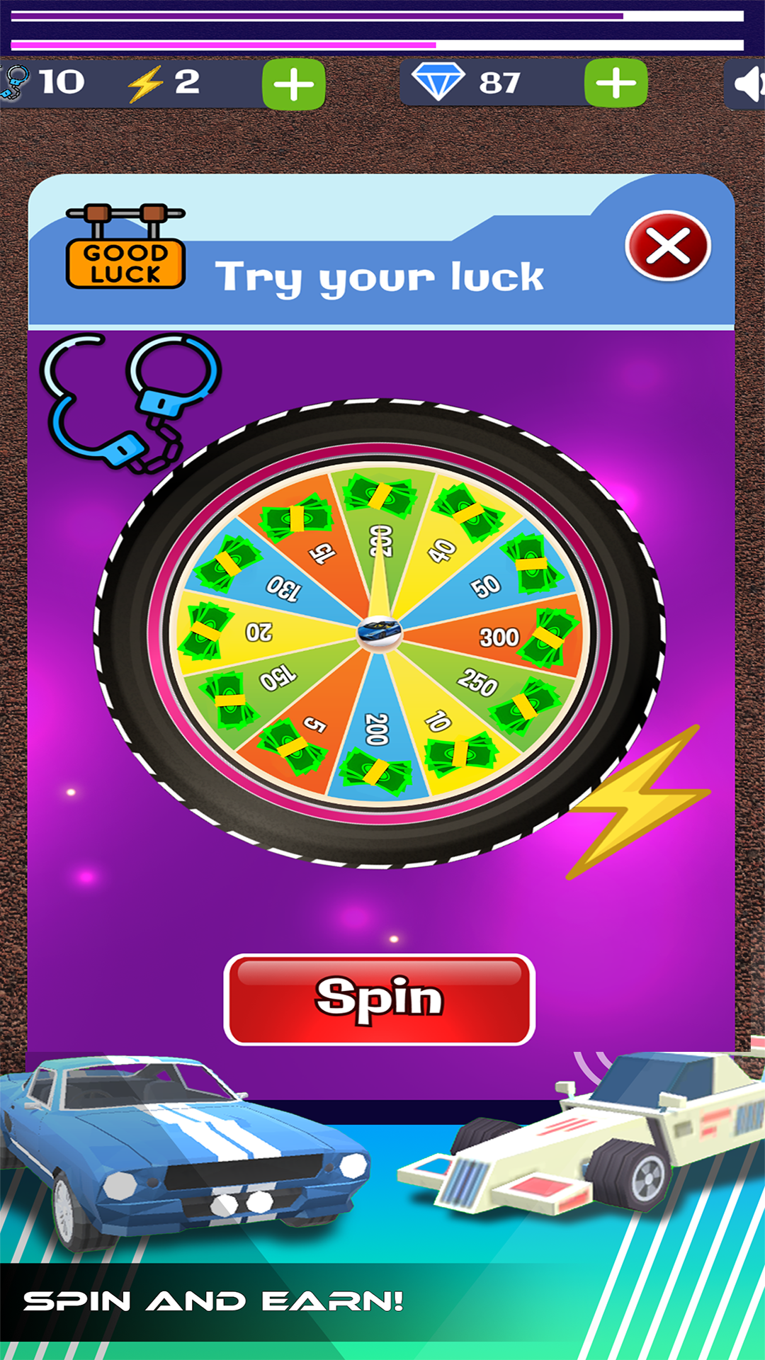 Unlock and upgrade vehicles for extended chases.