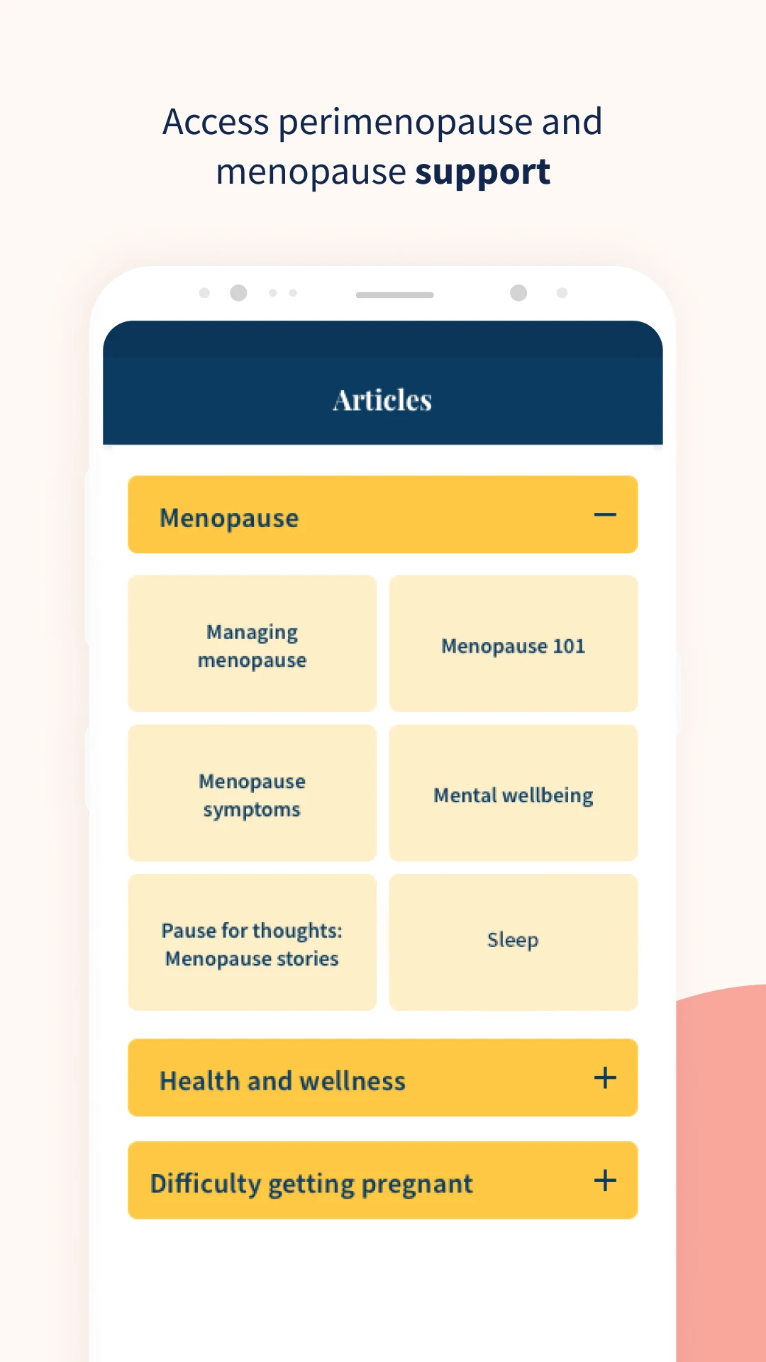- Avail menopause support program for symptom tracking, education, and confidence in navigating perimenopause and menopause. Gain access to preparation guides, symptom management tools, mental health support, and more.