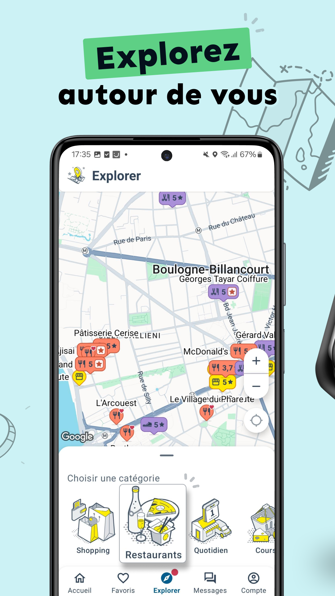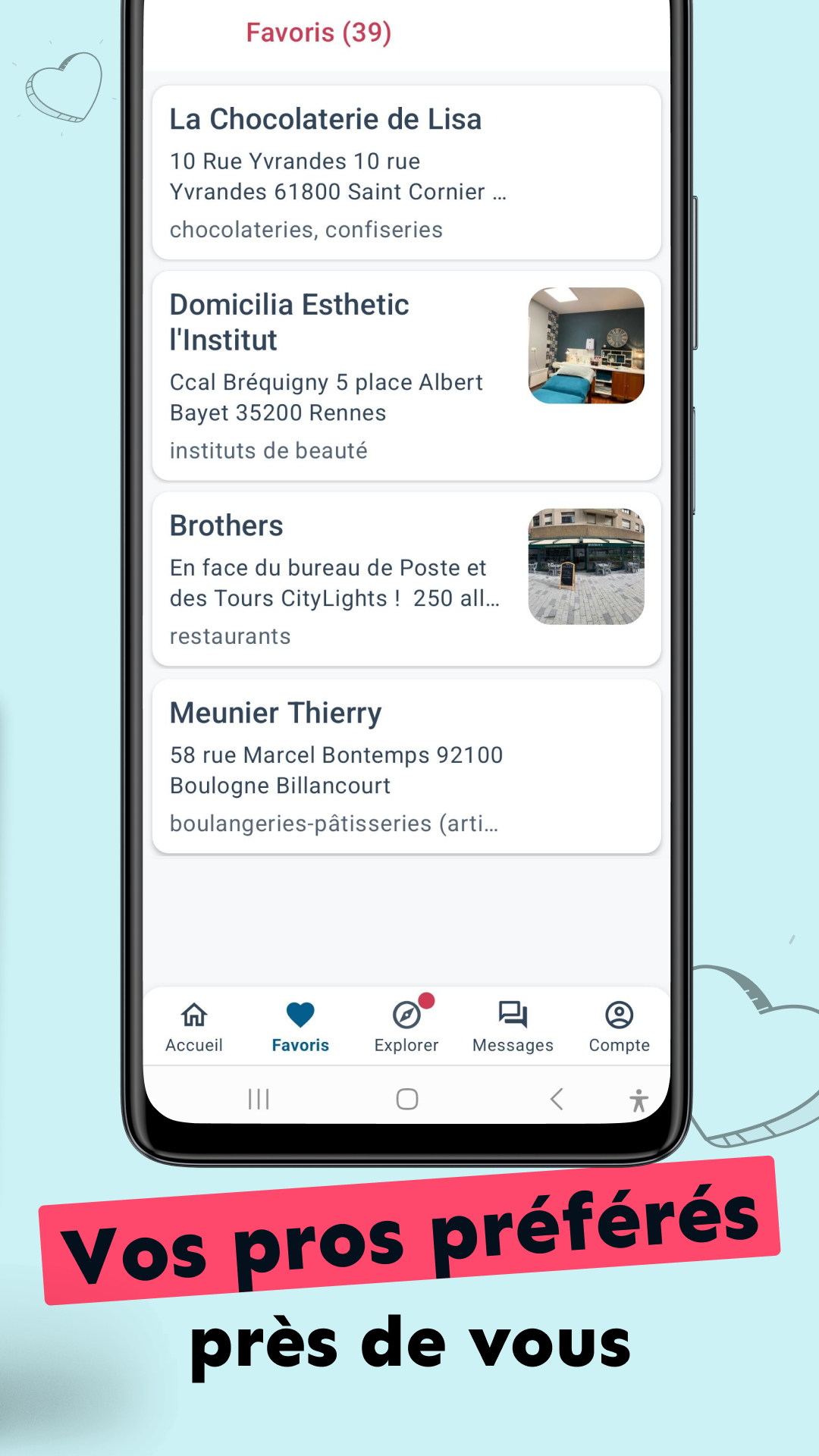 Save your favorite places to live (home, work, vacation, etc.). Discover new professionals thanks to suggestions from the home page. Easily locate them on the map.