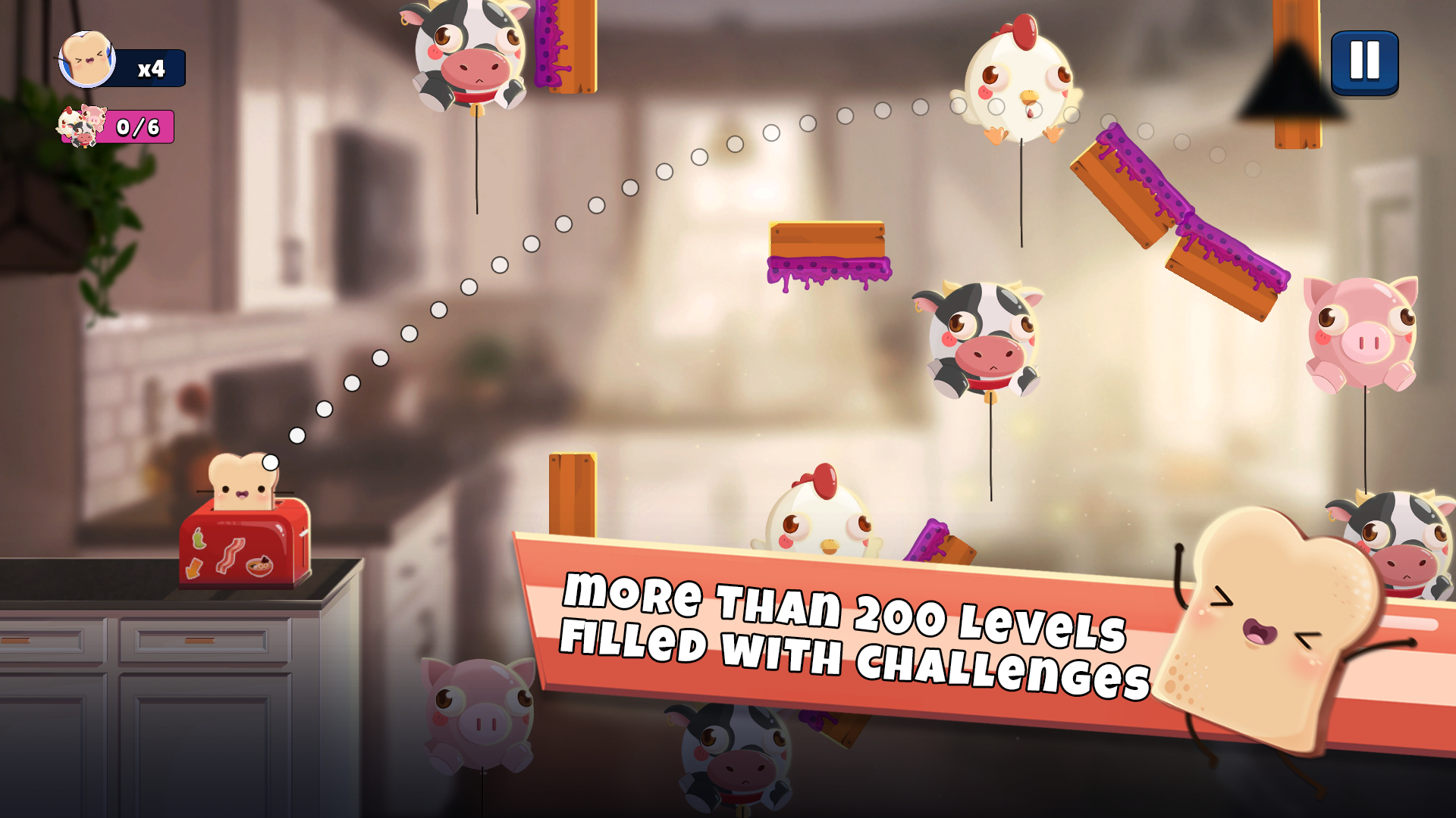 Experience unique levels featuring strategic challenges as you guide a magical bread through intriguing balloon-filled adventures.
