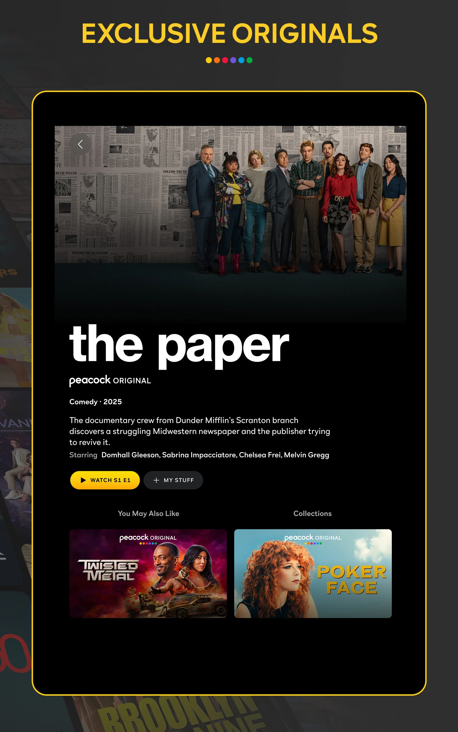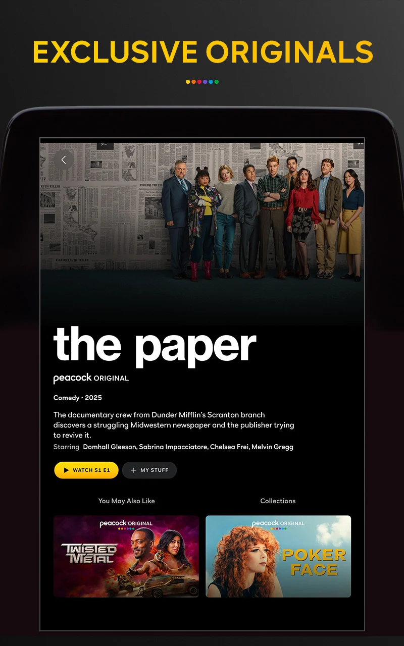 • Immerse yourself in original Peacock productions like Dr. Death, Bel-Air, Poker Face, and many others.