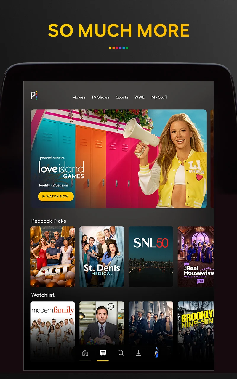 • Dive into Peacock Channels showcasing your preferred entertainment genres and news segments. Enjoy SNL Vault, Black Cinema, NBC Sports on Peacock, WWE wrestling, NBC News NOW, TODAY All Day, True Crime narratives, Hallmark Channel tales, and more.