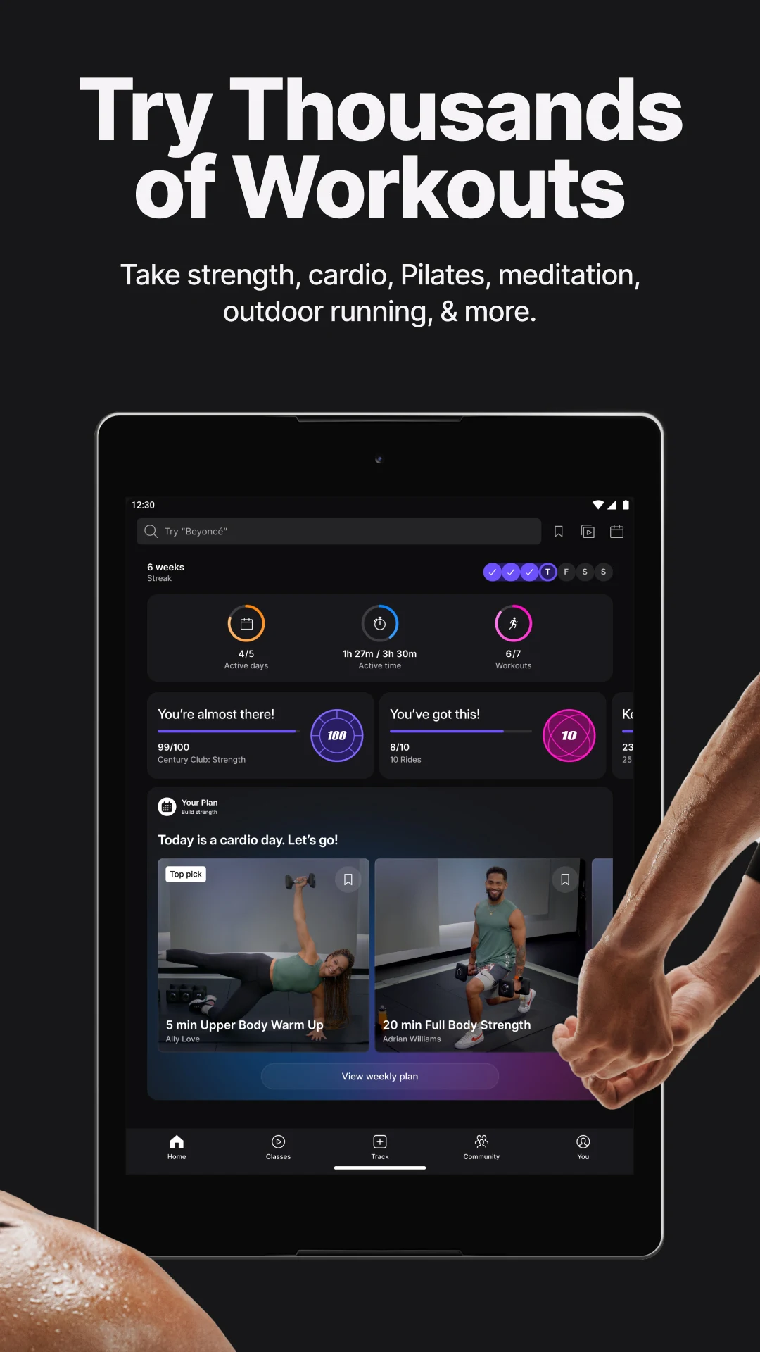 • Discover a variety of workouts to meet your fitness and cardio objectives, including strength training, indoor and outdoor running, cycling, yoga, HIIT, meditation, stretching, Pilates, Barre, and more. Whether you are working towards a healthier body or a calm mind, our cardio, training, and gym sessions are accessible on your Android phone, tablet, or TV.