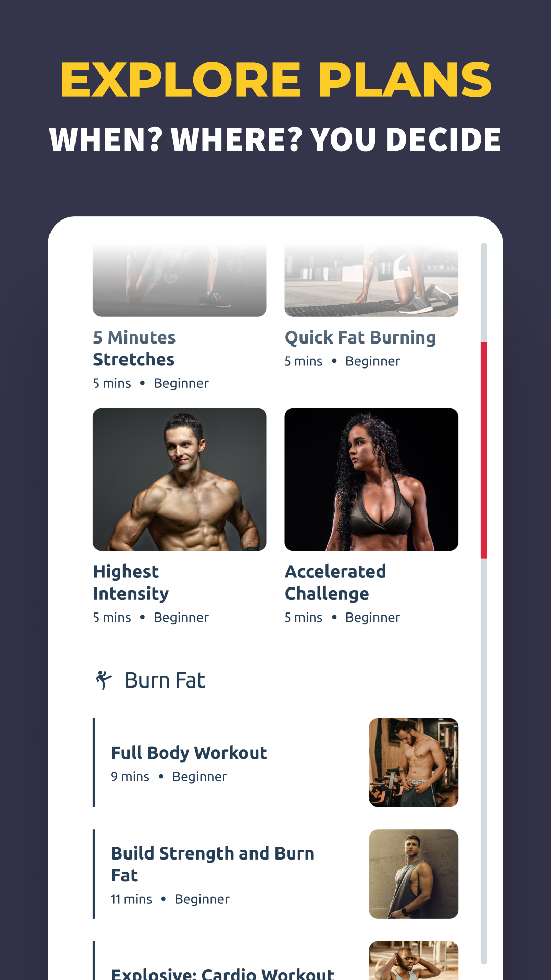 ◦ A: The app is built around efficiency. While it offers longer sessions, many of its most effective core and HIIT workouts are designed to be completed in just 5 to 15 minutes a day. Consistency is more important than duration, and the app's customizable plans make it easy to fit into any schedule.