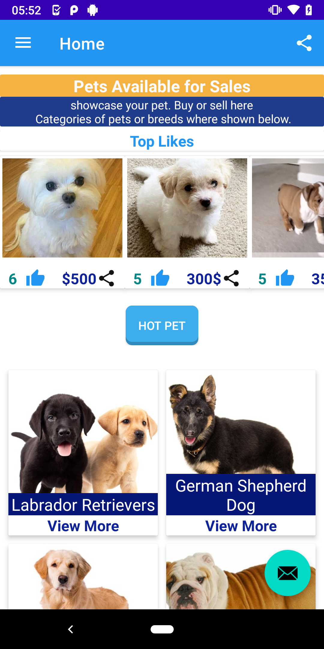 Showcase your pet on the app, whether you wish to sell them or are looking to acquire one. You can find various breeds of dogs including Boxers, Poodles, Bulldogs, Labradors, Golden Retrievers, German Shepherds, Beagles, Rottweilers, Yorkshire Terriers, Pomeranians, Chihuahuas, Great Danes, Pugs, and many other domestic animals.