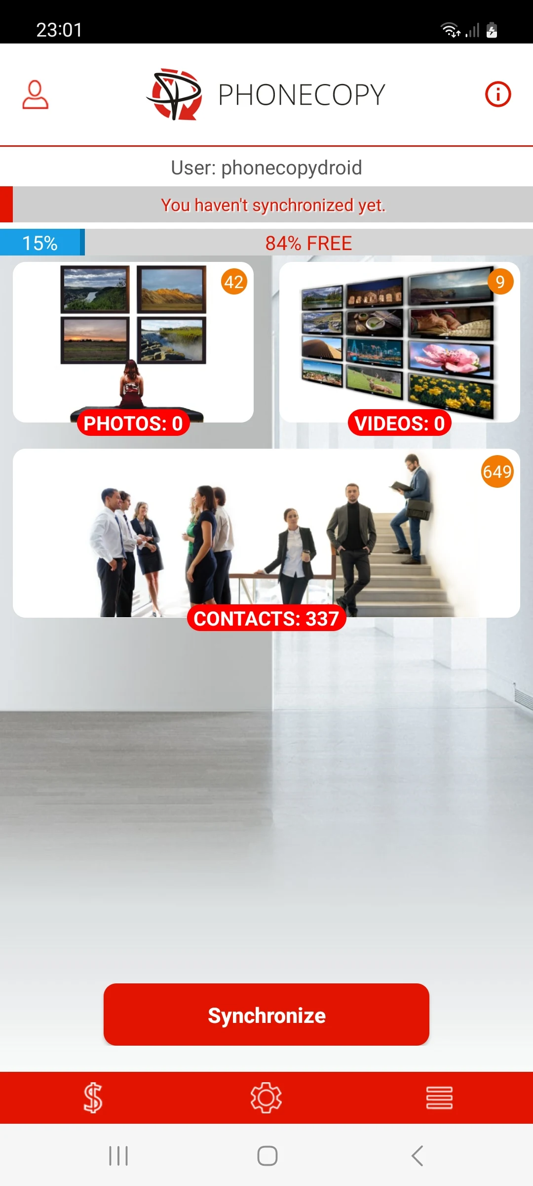 - The Android app currently supports the synchronization of contacts, SMS messages, photos, and videos.