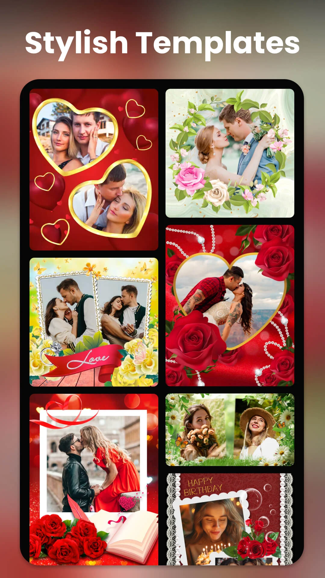 Love Collage offers everything you want in photo collage & photo frame editing. Love collage maker with countless layouts, photobook, unique photo frame, stickers & text, PIP, etc. help you decorate and store cherished love moments.
