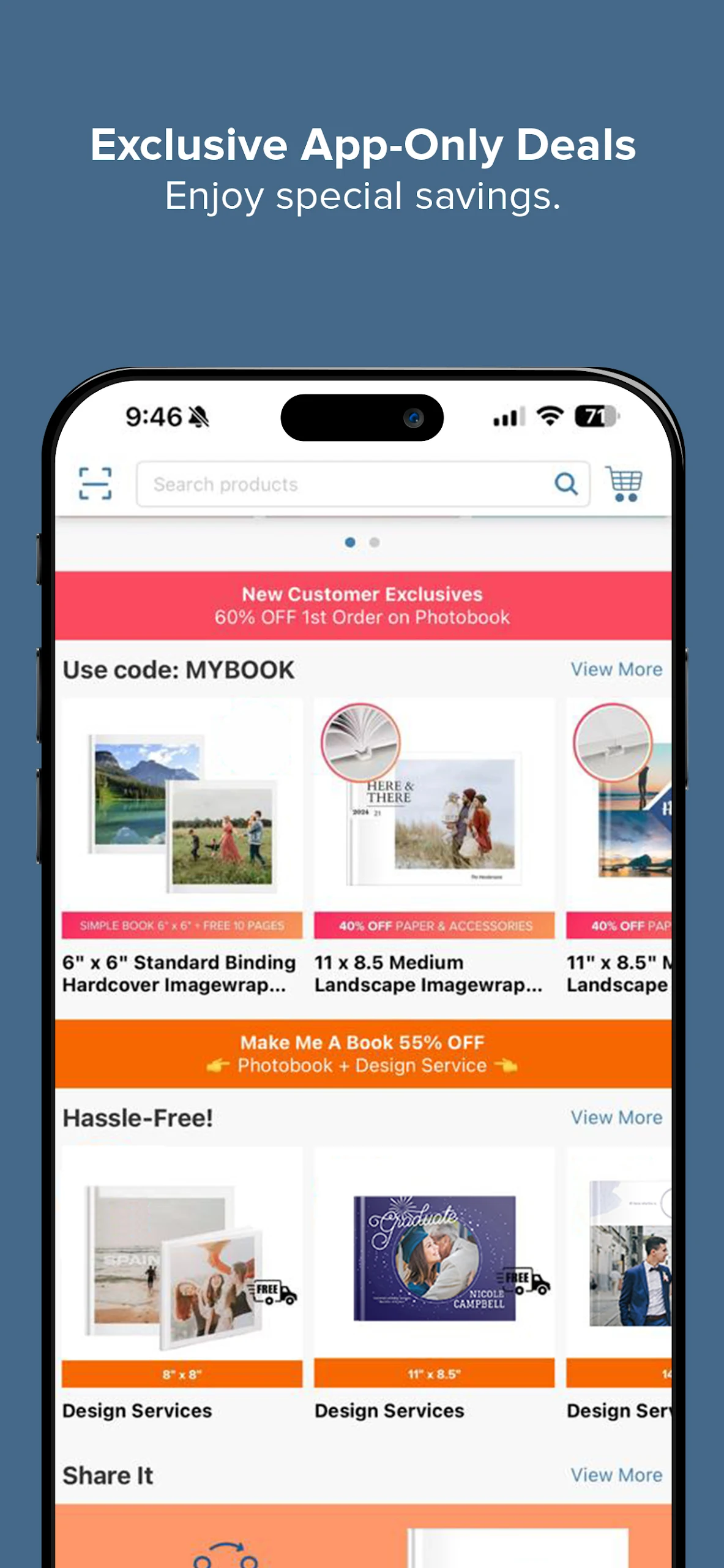 Transform your photos into tangible products directly from your mobile device, anytime and anywhere.