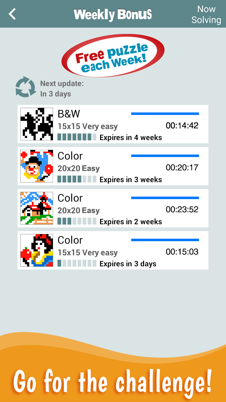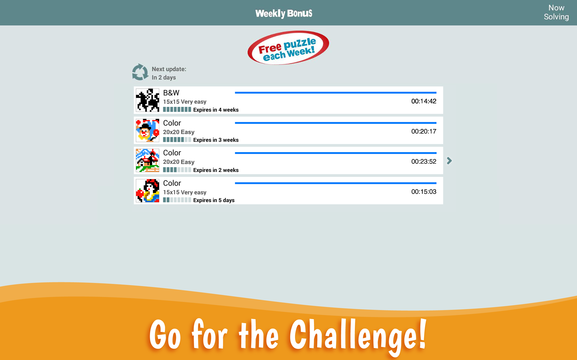 For added enjoyment, Pic-a-Pix is ad-free and features a Weekly Bonus section that offers an additional free puzzle every week.