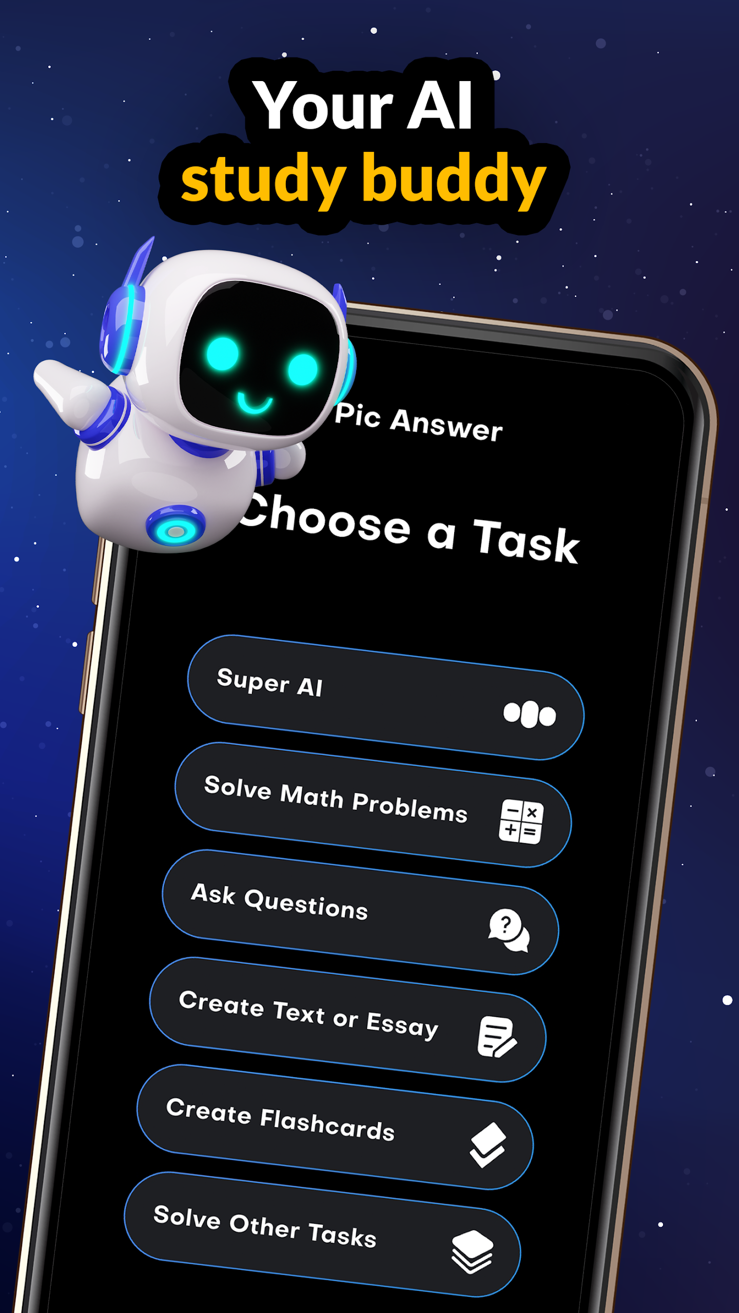Pic Answer - AI Solver isn't just a math app; it's a versatile learning tool that utilizes cutting-edge AI technology to solve academic questions across a range of subjects. Whether you're grappling with a complex algebra problem or delving into scientific theories, our app delivers the solutions you need with a simple photo snap.