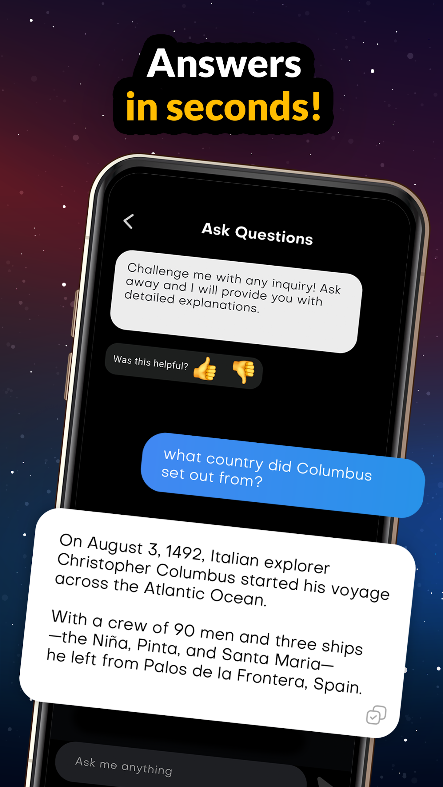 ● Instant Photo Solutions: Take a picture of any homework problem and receive accurate, AI-generated answers within seconds.