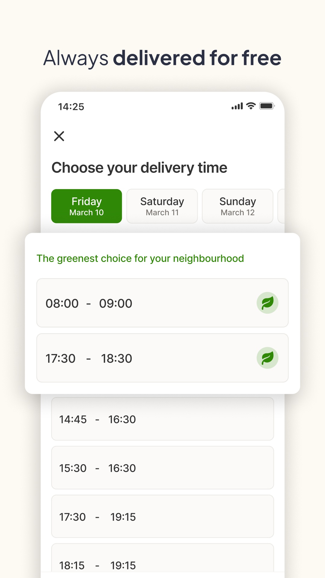 To shop with Picnic, simply download our app, register, and start adding items to your virtual cart. Compile a shopping list and choose a convenient delivery slot - and leave the rest to us!