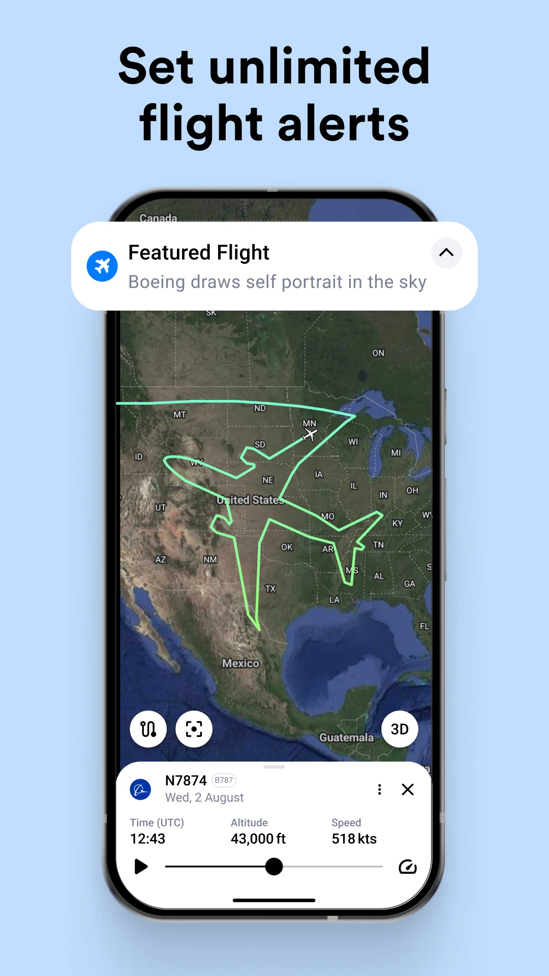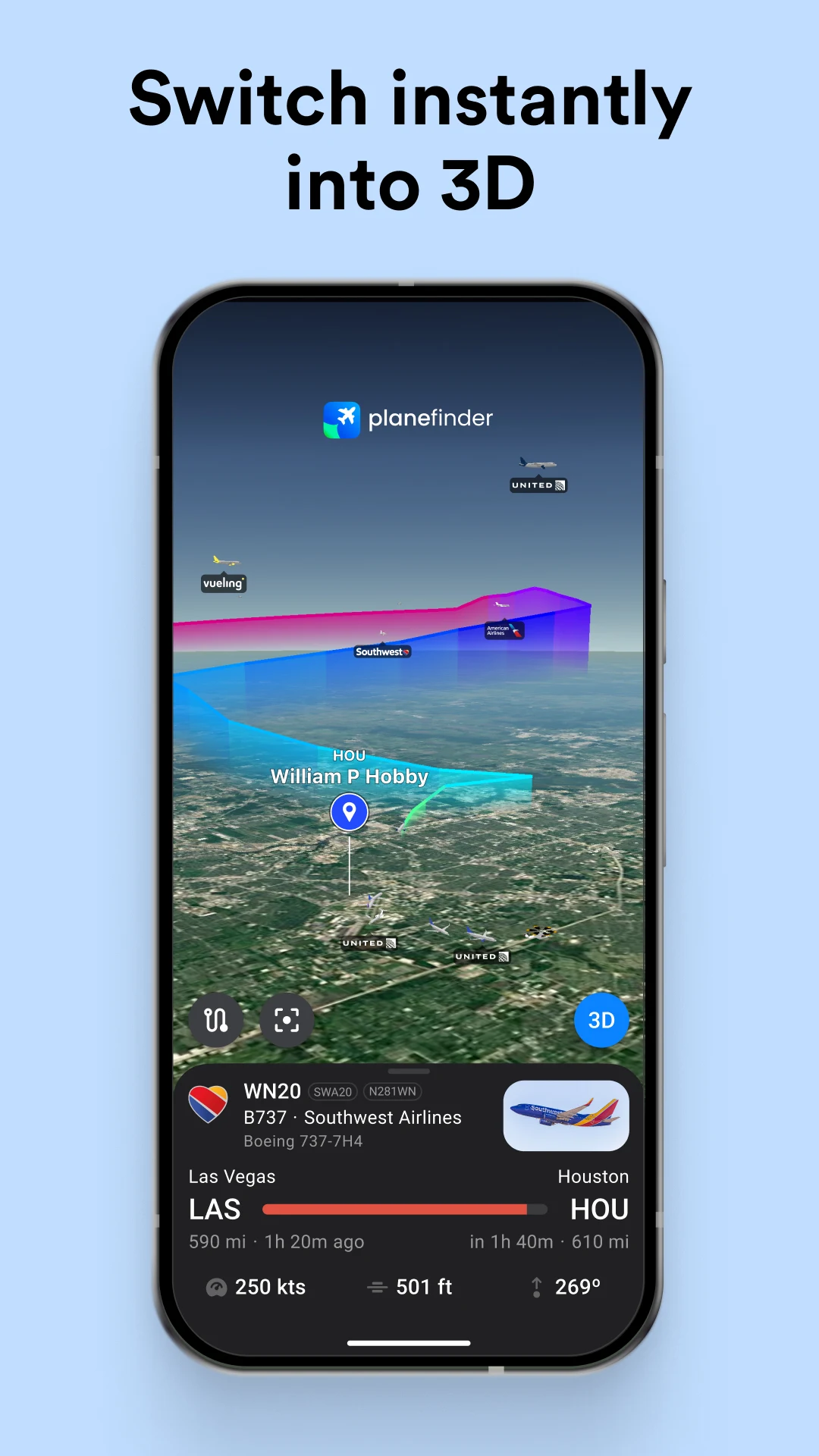 * 3D globe view - Monitor flights in 3D and observe live air traffic patterns in their full glory for both current and historical flights