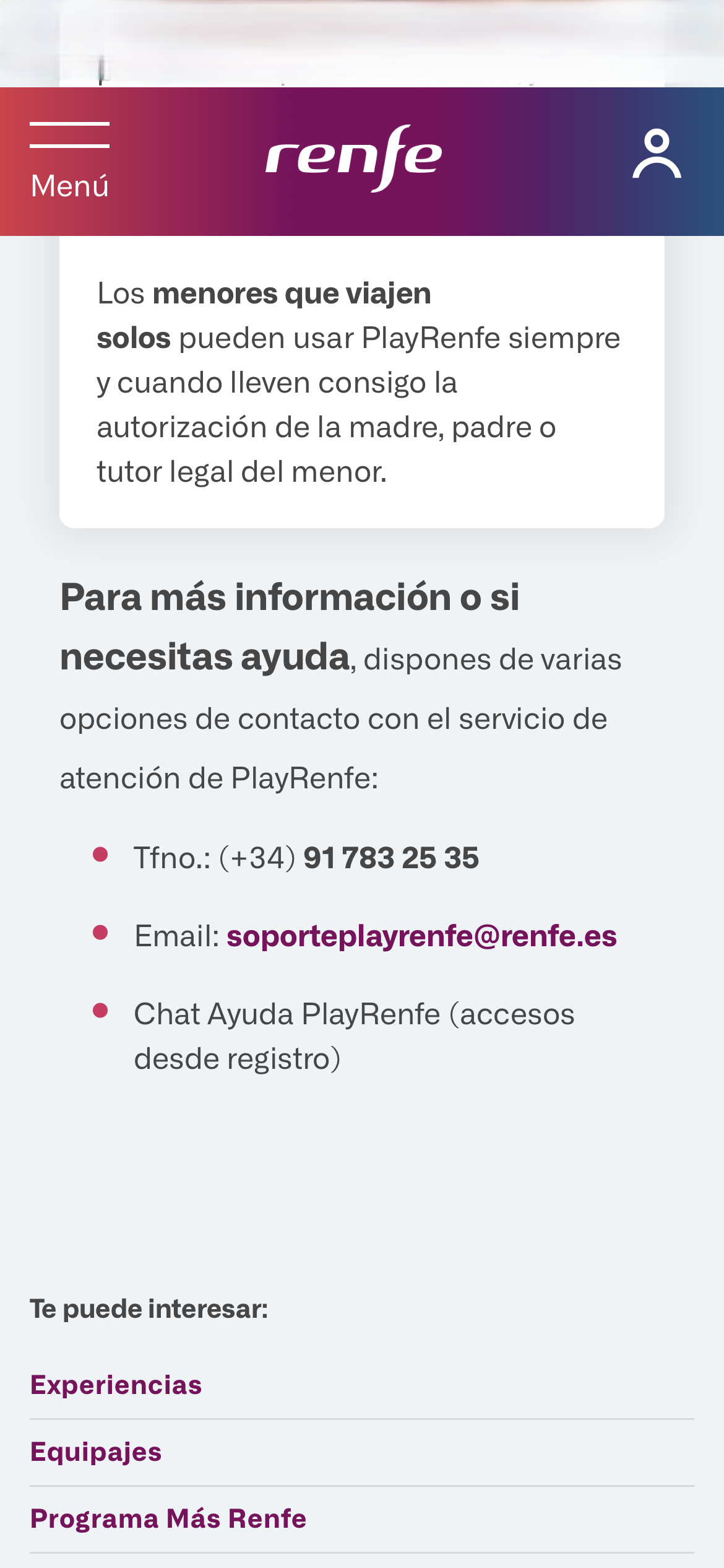 We recommend using the PlayRenfe App version: Android 8.1 or above (it's compatible with older versions, although some features may be limited).