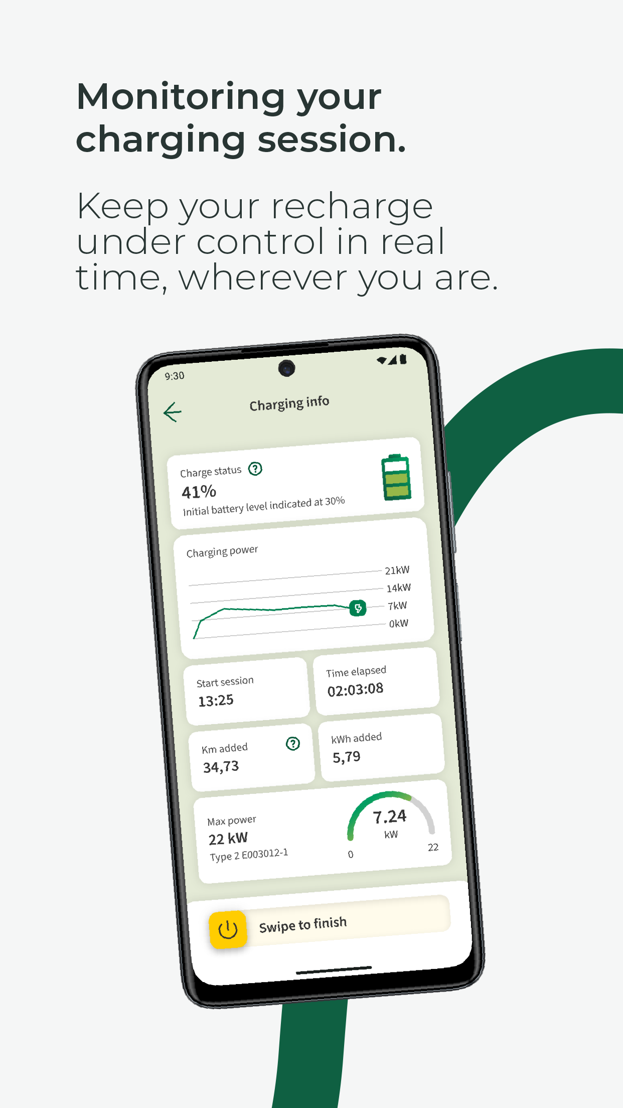 The Plenitude On the Road app promptly shows the status of your last charging session so you can always keep track of your charging. You’ll receive a notification 10 minutes before your charge is complete.