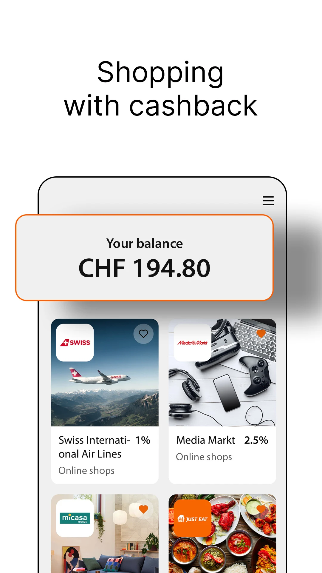 Cashback: Shop at participating partner shops, pay with the payment method stored in the poinz app and collect cashback for every franc spent.