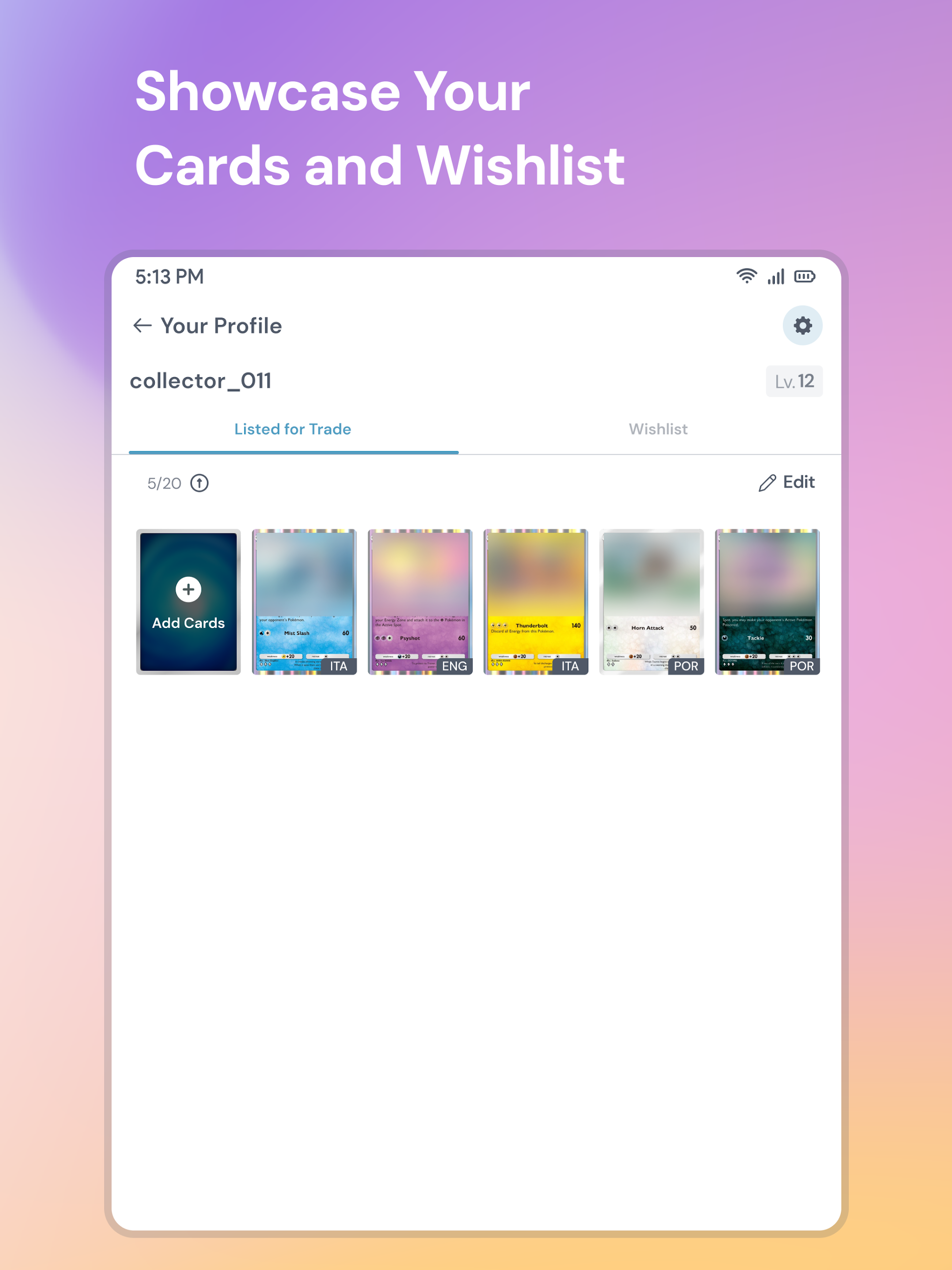 Discover, trade & connect with global TCG players—list cards, create wishlists & message securely.