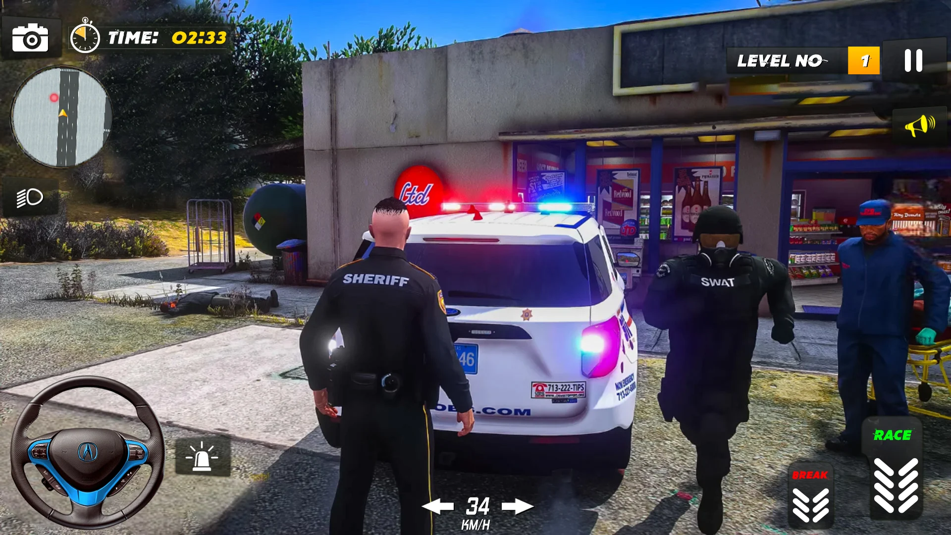 In police chase 2023 cop games, complete special missions in the police car simulator 3D. Drive police car simulator and cop driving game 2023. Enjoy an amazing police car game with police car parking mode in Free Cop Chase. Live the life of a policeman in US Police Simulator Cop Games in Police Cop Chase Car Game 2023. Take on the role of a police car driver and save the town from criminals in US Police Game Cop Chase 2019 and police wali game. Customize your police car in the garrage within the police car pursuit game in the Police Car Simulator 3D Games driver.