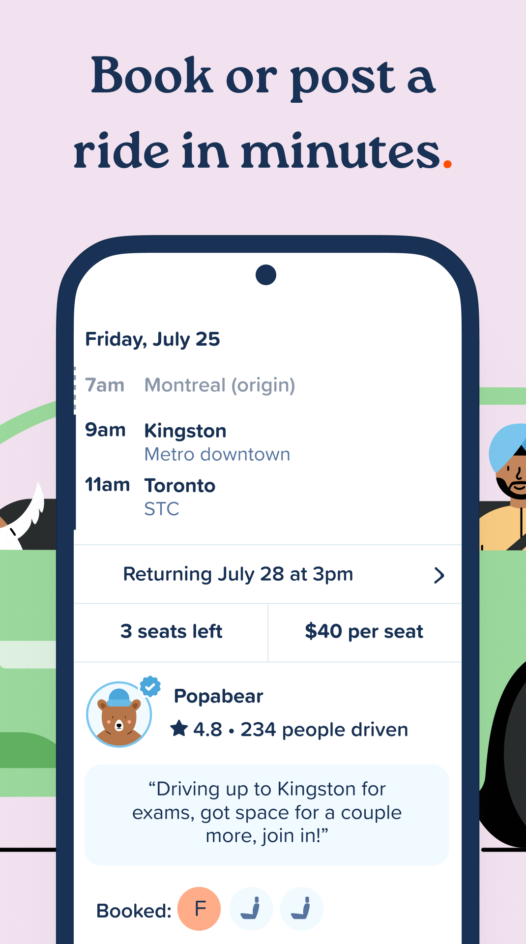 Become part of a community of two million individuals who are sharing rides nationwide. Whether you wish to drive or ride, connect with others heading in the same direction and select your travel companions based on their profiles, ratings, and shared connections. This is an excellent way to save money, lessen your environmental impact, and meet interesting people along the journey.