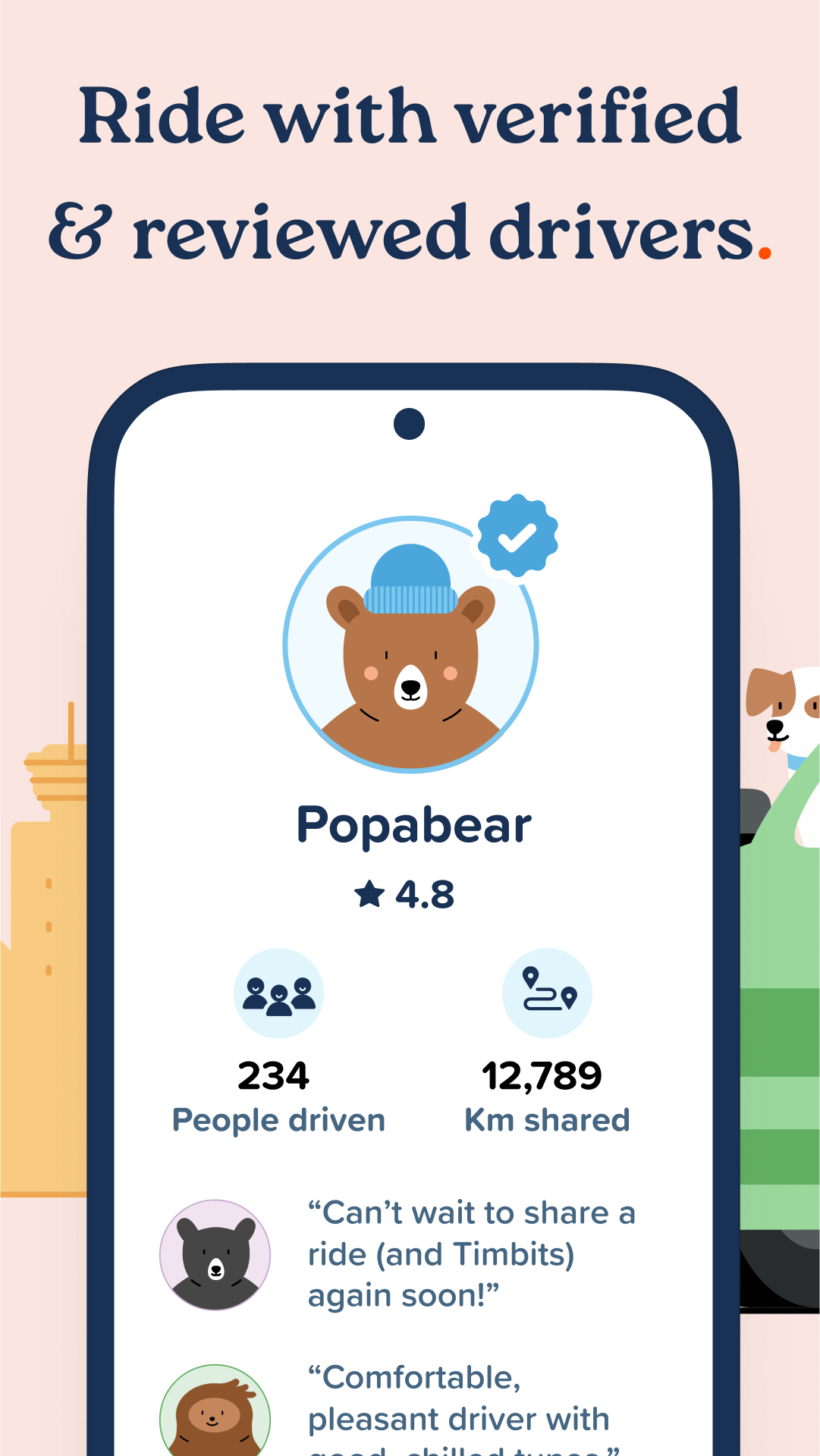 • Travel with verified users who have been rated by the community