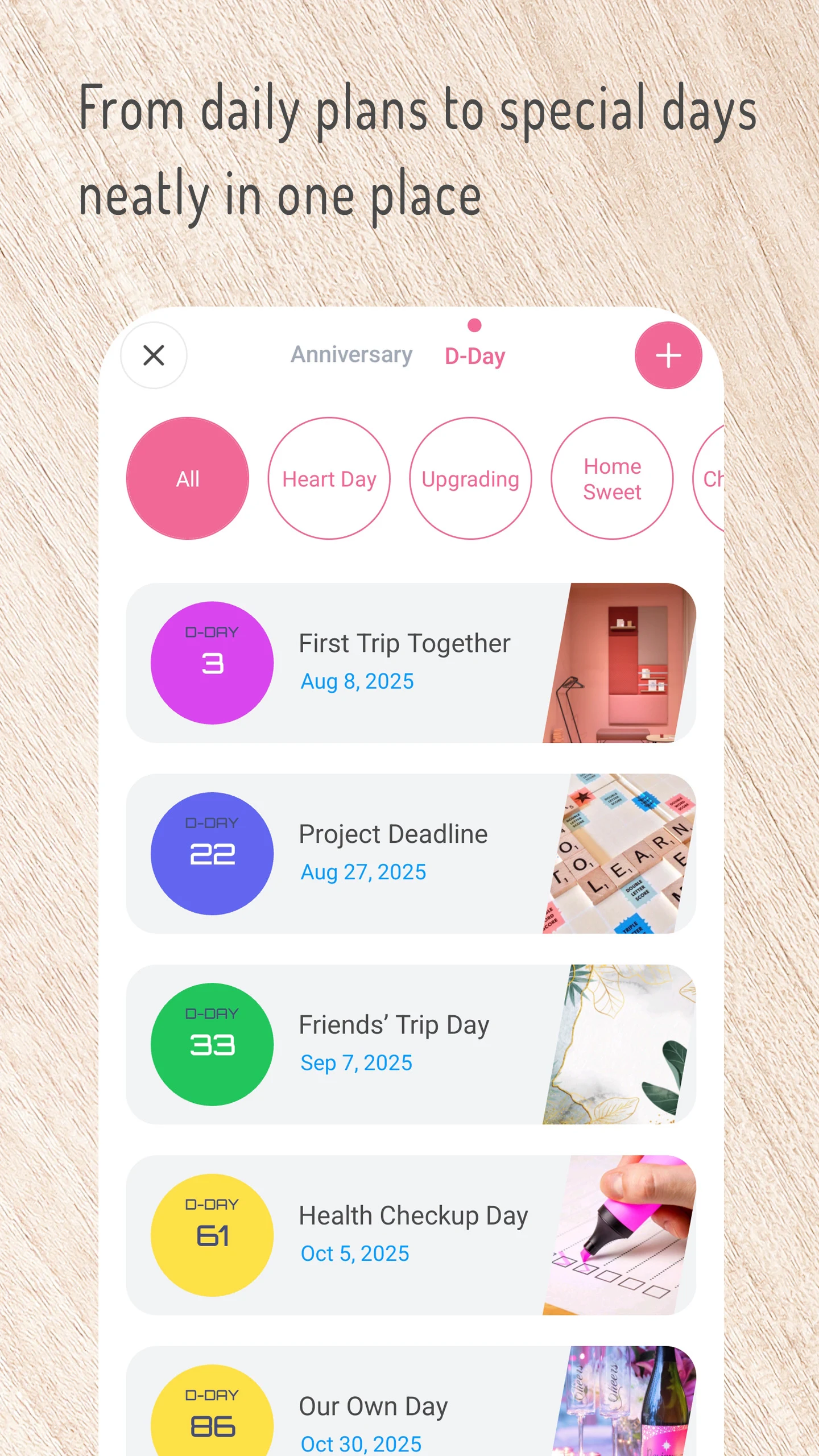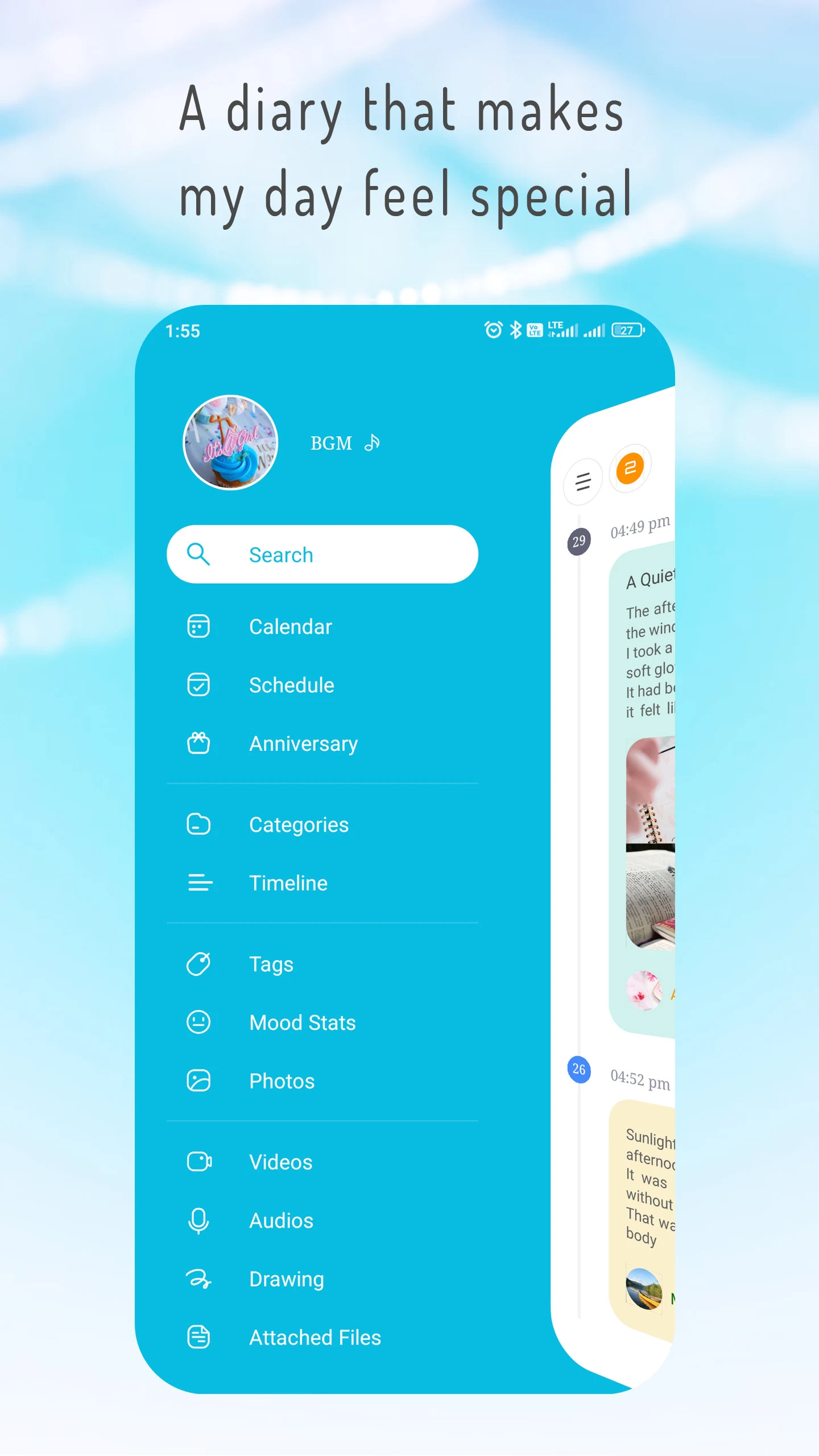 Capture your daily experiences & memories effortlessly with photos, categories, & customized designs for an engaging diary journey.