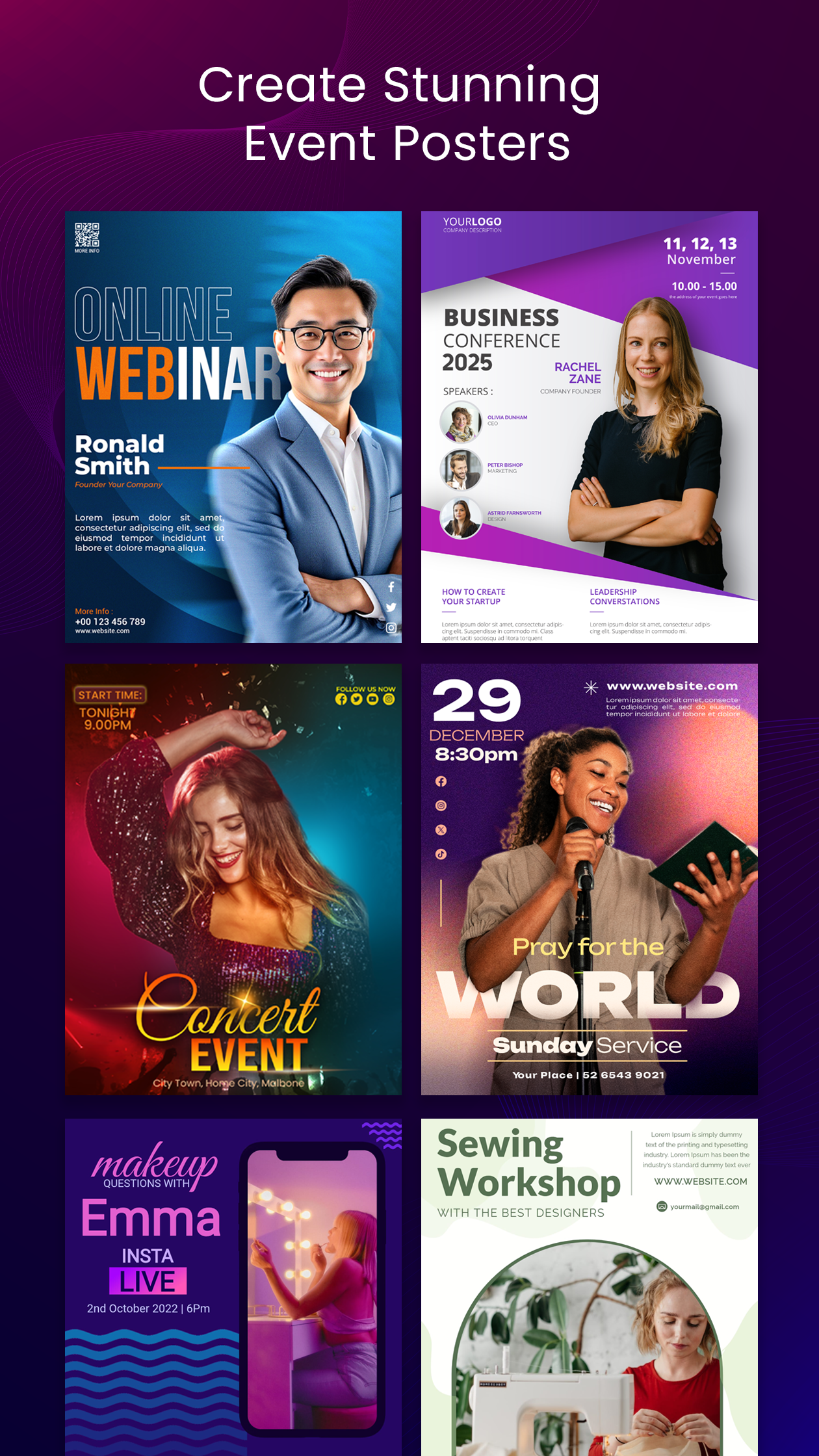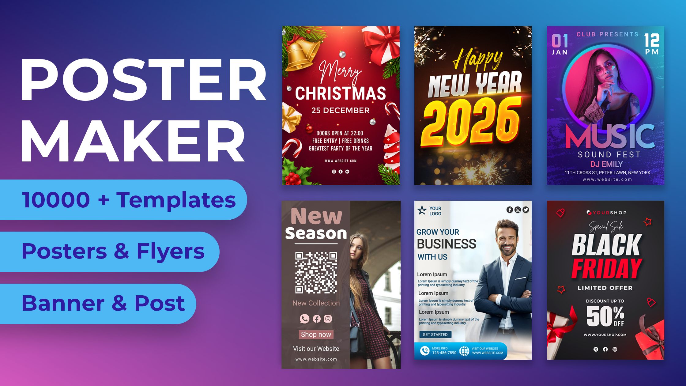 Easily create promotional materials for events like Black Friday, carnivals, Halloween, Christmas, New Year 2023, Easter, Fourth of July, and Labor Day. Enhance your professional image with this app.