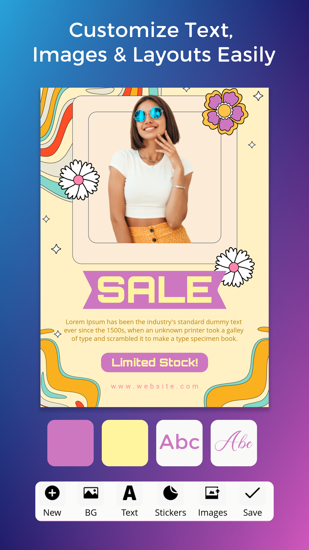 Design eye-catching posters and flyers effortlessly on your Android device.