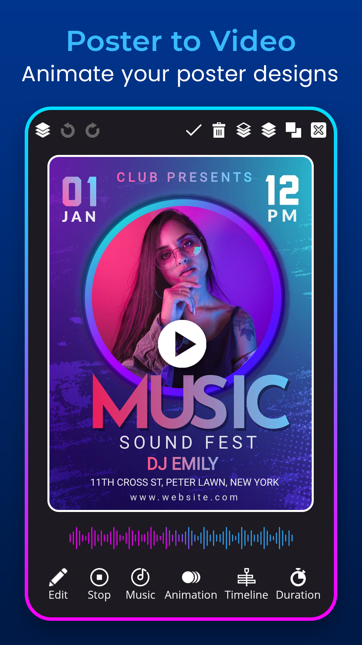 Impress with stunning party flyers and music posters by adding text, images, and graphics for concerts, club events, DJ nights, and more. Create posters for music festivals, album releases, and musical gatherings easily.