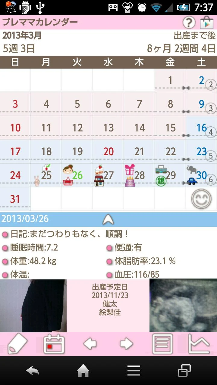 --The application also allows you to save ultrasound images within the calendar and the list for monitoring the development of your embryo and fetus.