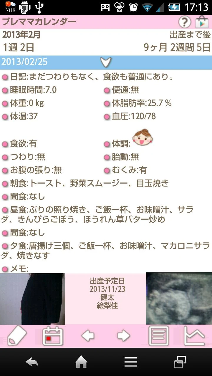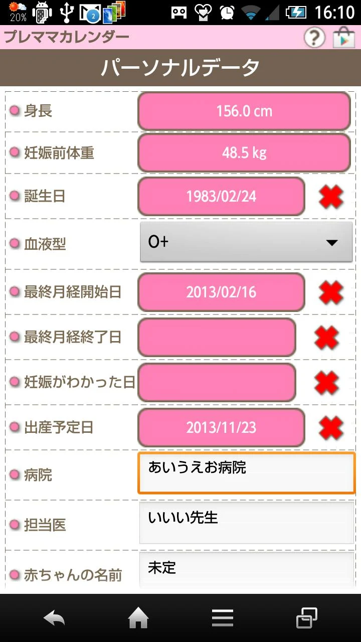 ❸ 「Personal Data」:Save the info of your pregnancy.