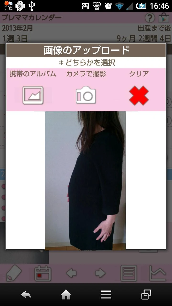 Pregnancy Photo 1 & 2: When you archive a pregnancy image on the calendar, it replicates as Photo 1. By tapping Photo 2, a pop-up will enable you to choose "Album" or "Camera" to upload and secure the photo.
