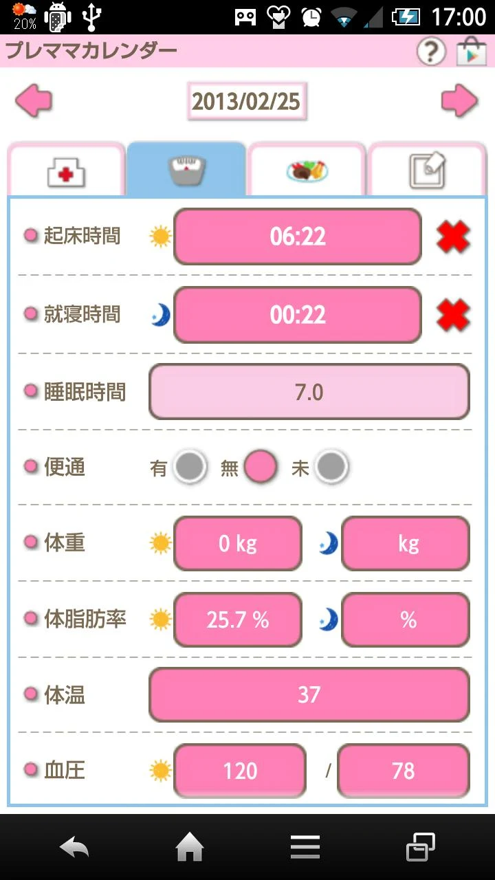 Tick here when you went to a checkup. A hospital mark with tick appear on the date when you tick here.