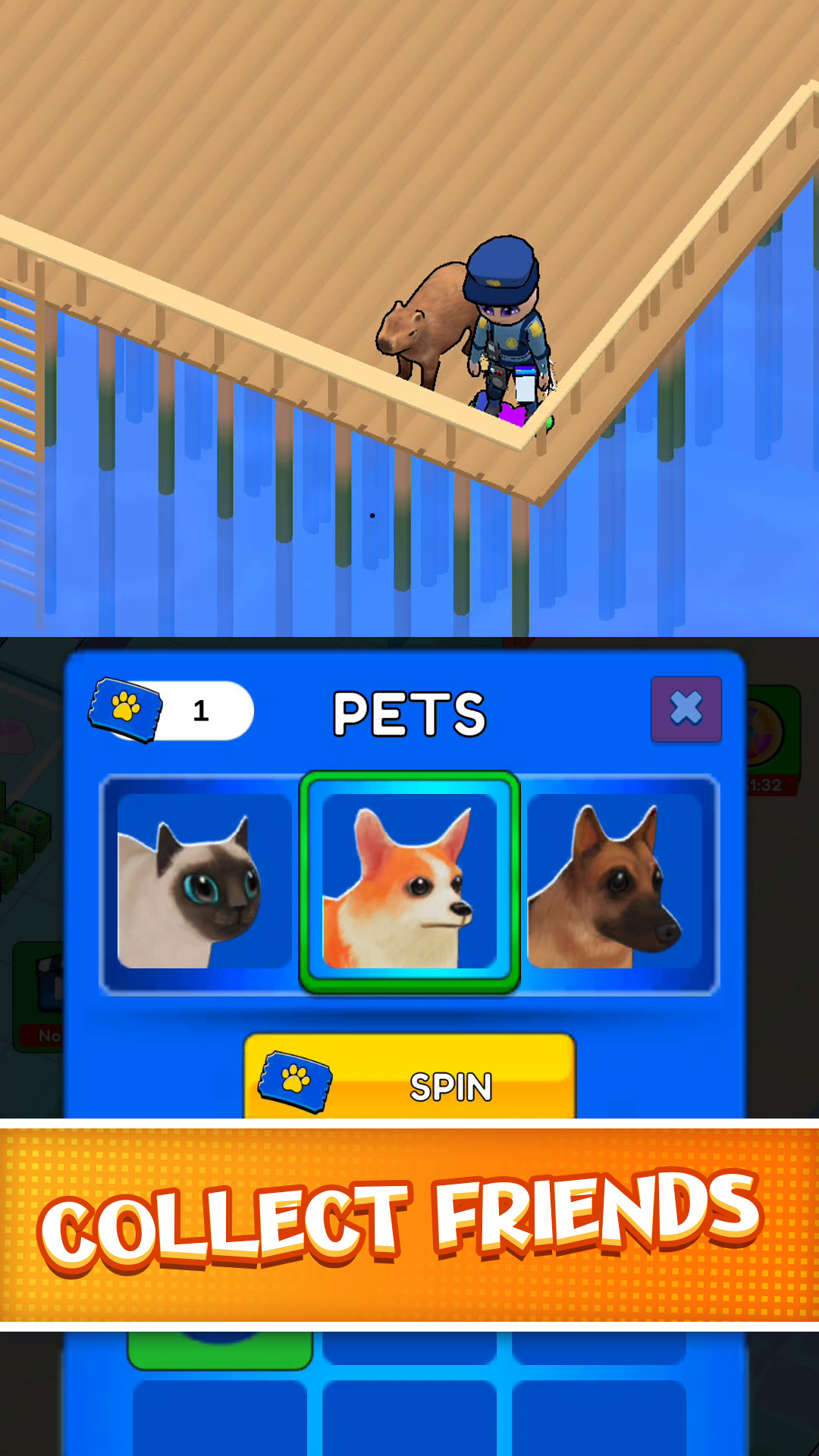 • Acquire pets! A 3D companion that trails you, from dogs to capybaras… or even chickens!