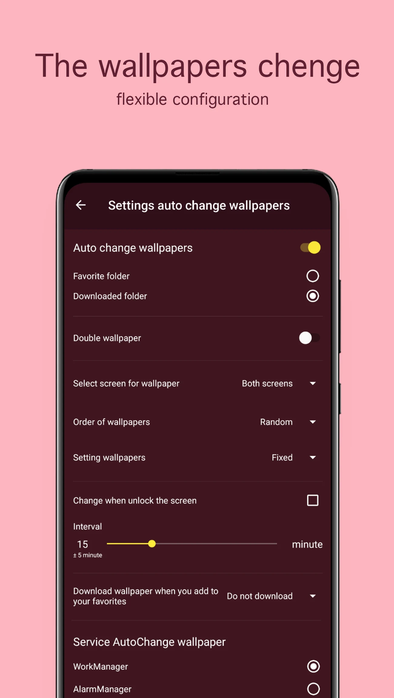 • Automatic wallpaper changes at specified intervals (including live rose wallpapers)