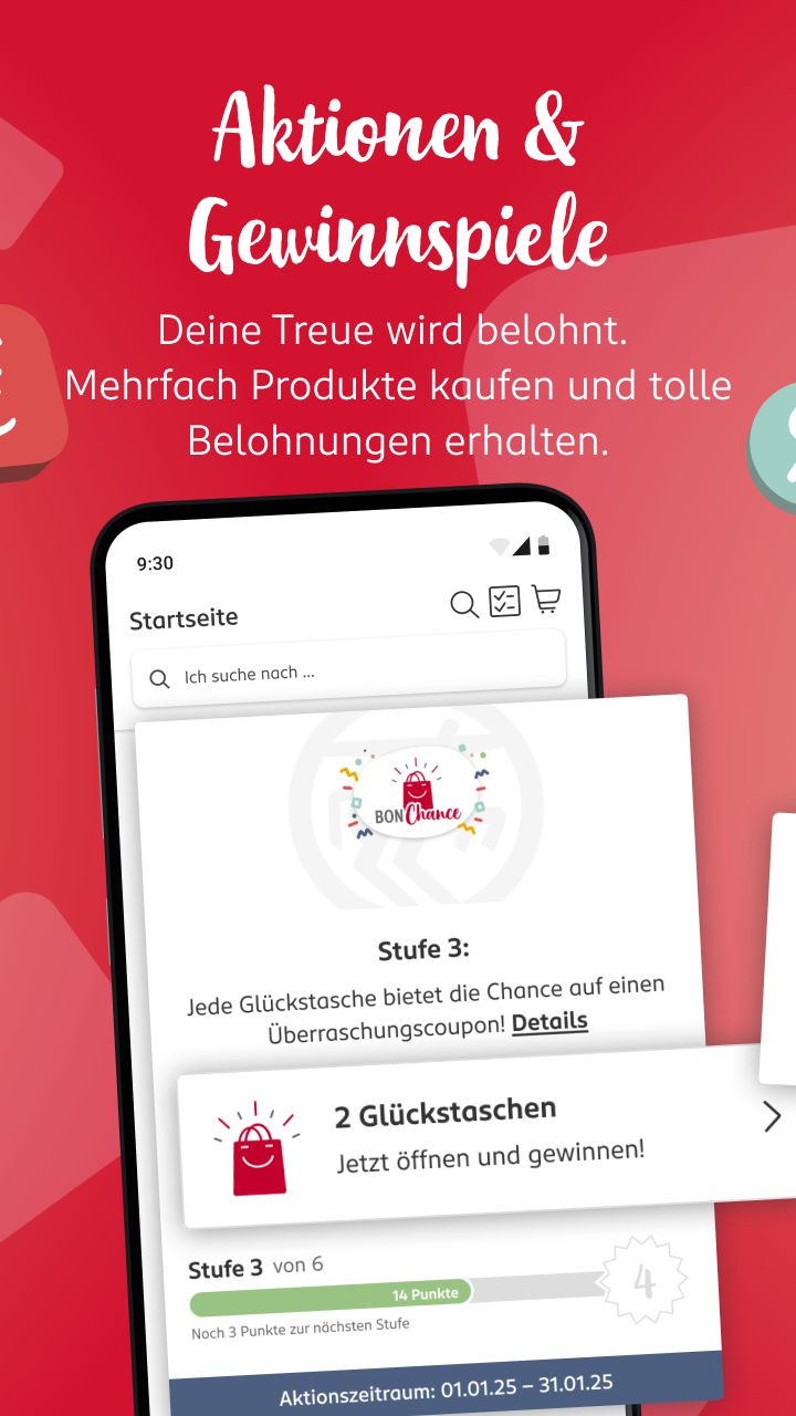 Registered app users can participate in activities like the BONUS Chance promotion. Collect and win!