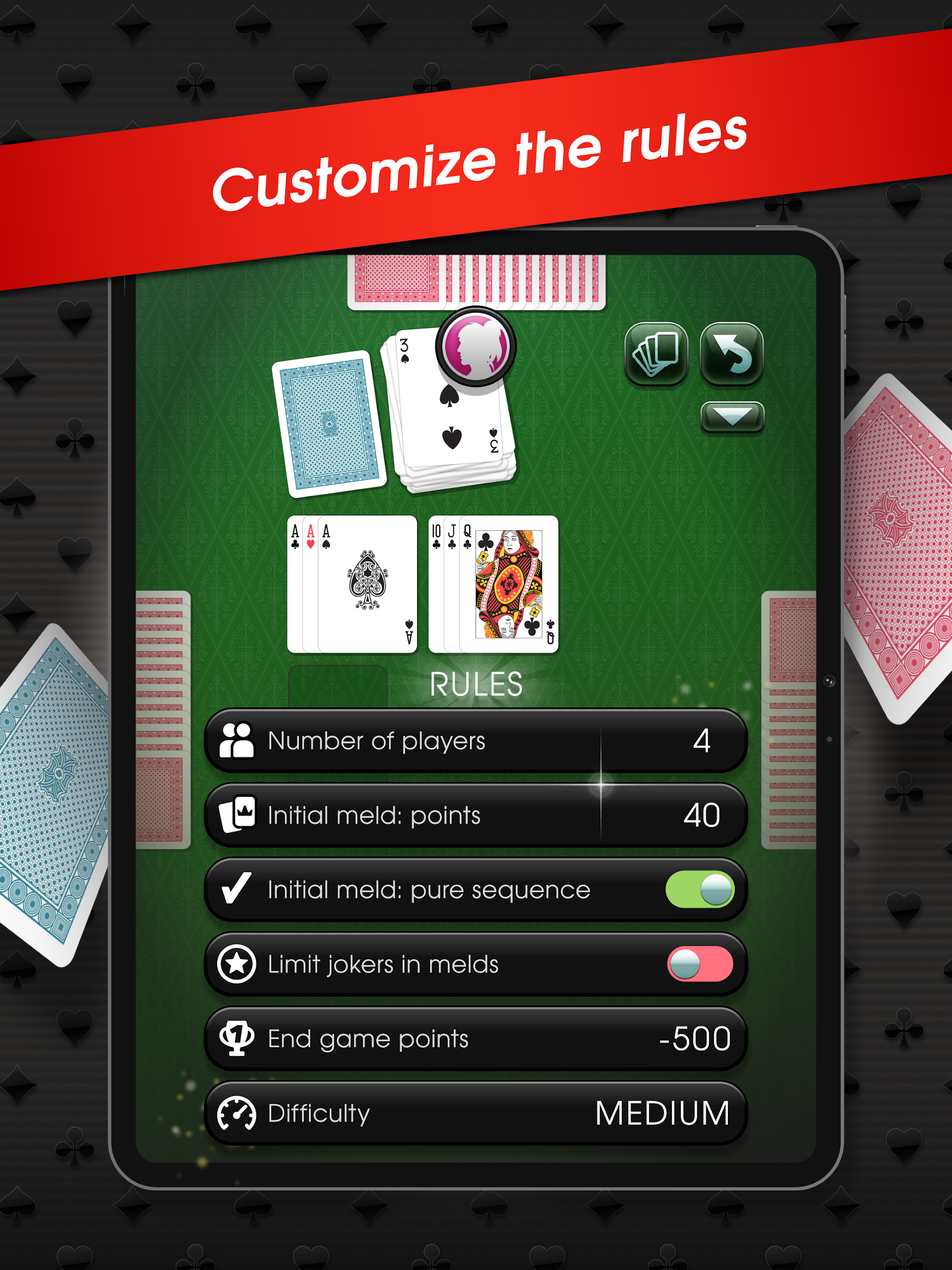 Get ready to challenge up to three opponents in this virtual card game utopia. Whether you prefer portrait or landscape mode, Rummy is always there to provide endless entertainment. Tailor the game to your liking by customizing difficulty levels and rules - it's your game, play it your way!